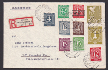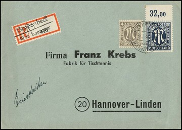 80 Pfg., A-Zähnung, vom Oberrand, nebst 4 Pfg., auf R-Brief aus Bredenbeck über Hannover 1946, sign. A. Schlegel. Mi. 800,- +