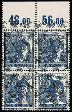 Arbeiter-Netzaufdruck in postfrischen Oberrand-Viererblöcken (ohne Nr. 49, mit Nr. A49), dabei 2 und 80 Pfg. je PORdgz, Mi. 1264,-