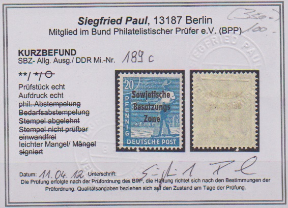 Aufdruck-Ganzsachenkarte 12 Pfg. mit kopfstehendem Aufdruck links unten ungebraucht, nur wenige Exemplare bekannt, sign. Zierer