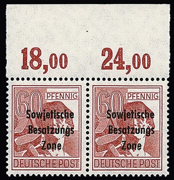 60 Pfg. Maschinenaufdruck im postfr. waagerechten Oberrandpaar, Mi. 500,-