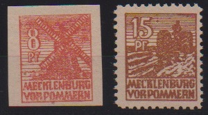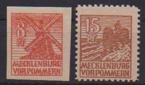 8 Pfg. rotorange und 15 Pfg. schwärzlichgelbbraun je postfrisch, sign. Kramp bzw. Thom. Mi. 420,-