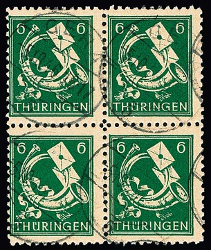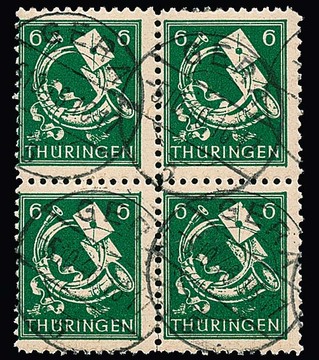 6 Pfg., gute Papiersorte, tadelloser, rundgestempelter Viererblock, Fotoexp. Schulz. Mi. lose 560,- +