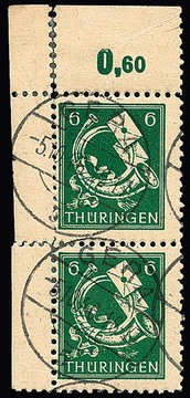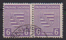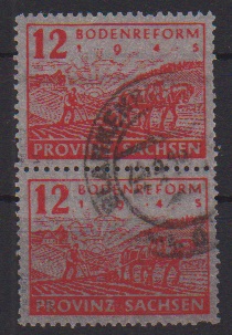 12 Pfg. Bodenreform, Zigarettenpapier, gutes Z-Wasserzeichen im gest. Paar (untere Marke ein Zahn), sign. Ströh. Mi. 300,-
