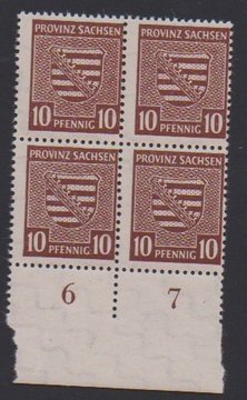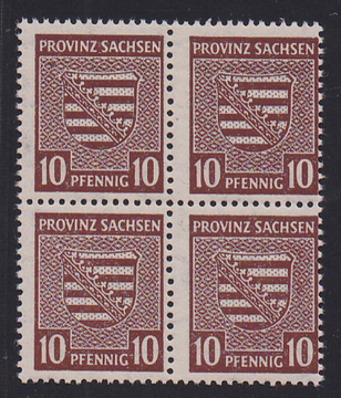 10 Pfg., gute Gummi-Variante (UV gelblich) im postfrischen Viererblock vom Unterrand, sign. Jasch. Mi. 480,-