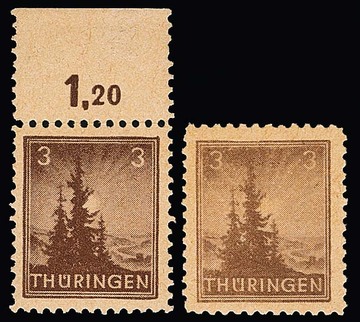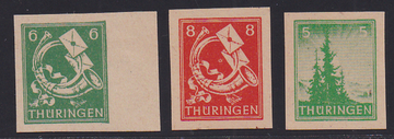 Freimarken Thüringen ungezähnt postfrisch, teils vom Oberrand, sign. Kramp. Mi. 400,- +