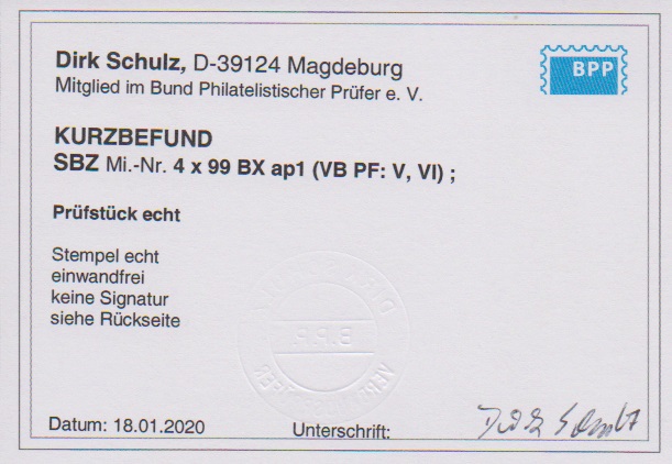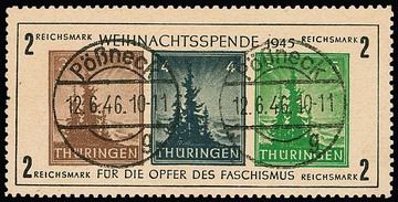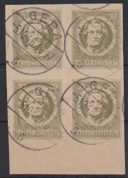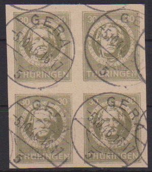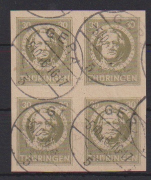 Antifaschismus, Type III, tadelloser Block auf gutem t-Papier mit klaren Ortsstempeln von Pößneck, Attest Ströh. Mi. 3200,-
