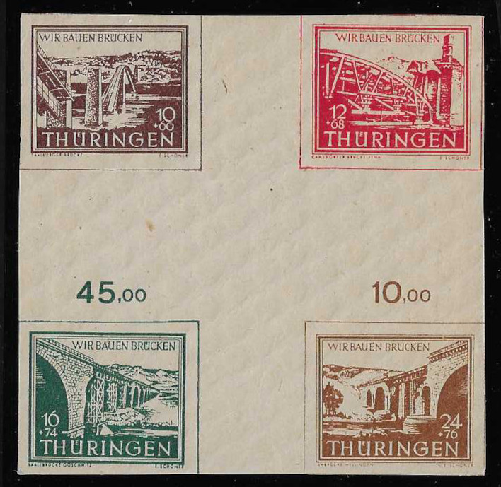 Thüringen, Brückenbau-Zusammendrucke überkpl. postfrisch, WZd1/2, zusätzlich WZd2cyIII (Fotoexp. Jasch), sowie Herzstück 1. Mi. 420,-