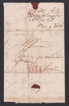"Ostende", 1644, früher, mit der Post beförderter Brief nach Antwerpen