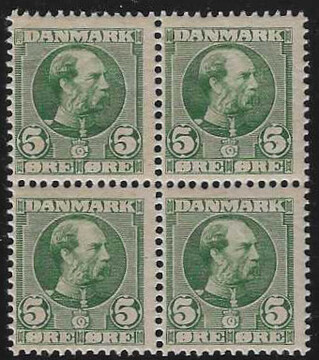 Christian IX., 1904, kpl. postfrische Viererblock-Serie, Mi. für Falz (!) 480,- lose