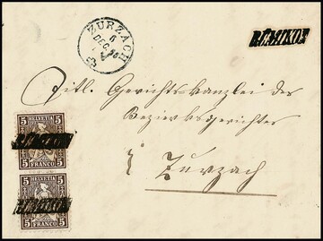 10 C. gelbbraun und 40 C. orange, gut gerandete Prachtstücke auf etwas fleckigem Faltbrief 1862 mit Ankerstempel und Neben-K2 "Sinai" nach Constantinopel