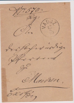 1889, K1 "Vaduz" auf Brief (ohne Seitenklappen, kl. Klebestelle) nach Mauren