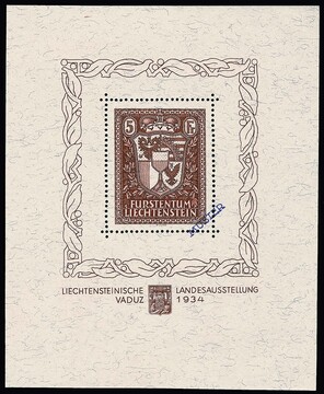 Ausstellungsblock tadellos postfrisch mit violettem Handstempel "MUSTER". Attest Eichele "ein Vielfaches seltener als der verausgabte Block"