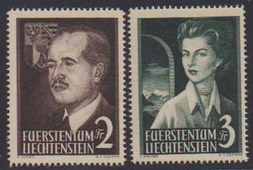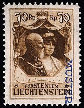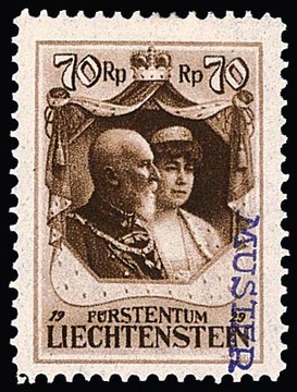 Regierungsantritt Fürst Franz I., komplette Serie mit violettem Handstempel "MUSTER"
