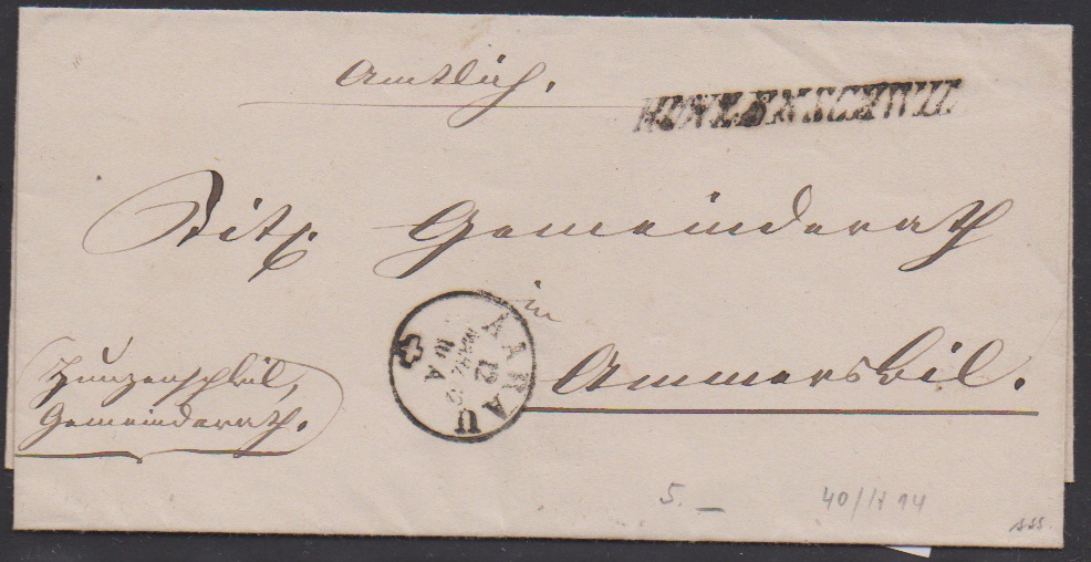 "Kaiseraugst", seltener Schrägschrift-L1 auf Brief 1858 (40)