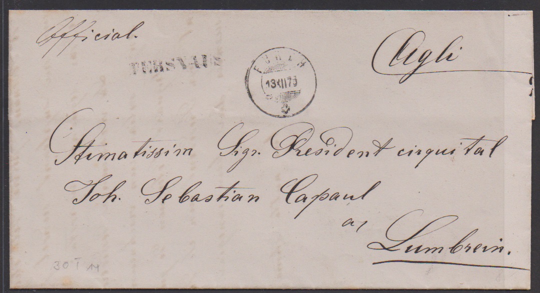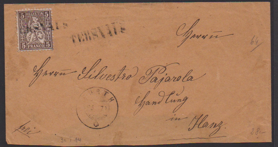 "Vuippens", seltener L1 auf Brief (leichte Gebrauchsspuren) 1872 (43)