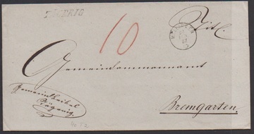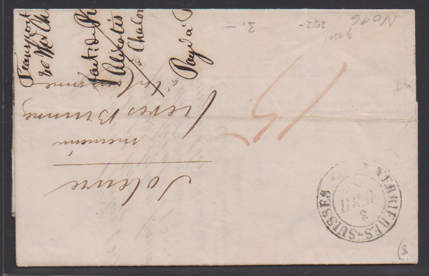 "Verrieres-Suisses", großer Zier-K2 auf Faltbrief 1852 (120)
