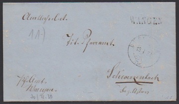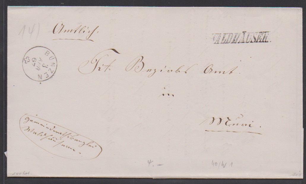 "Waldhäusern", Schrägschrift-L1 nebst K1 "Bunzen" auf Brief 1867 (40)