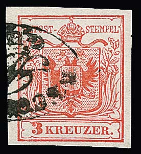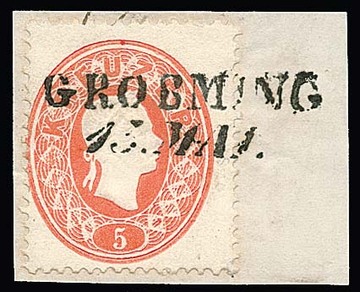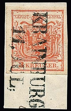 "Güns Recomando", Ovalstempel (linke Hälfte) auf Kabinettstück 3 Kr., seltener Stempel