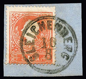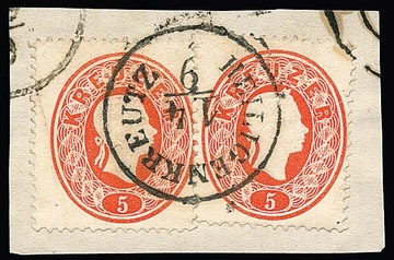 "Heiligenkreutz", Ungarn-K1 auf Kabinettbriefstück mit zweimal 5 Kr.