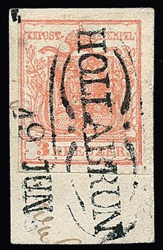 "Hollabrun", Niederösterreich-Zierstempel auf Kabinettbriefstück mit 3 Kr.