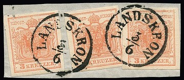 "Landskron", Böhmen-K1 auf Kabinettbriefstück mit dreimal 3 Kr.