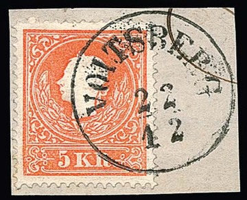 "Szombathely", großer Ungarn-K1 auf Kabinettbriefstück mit 3 Kr., sign. Ferchenbauer