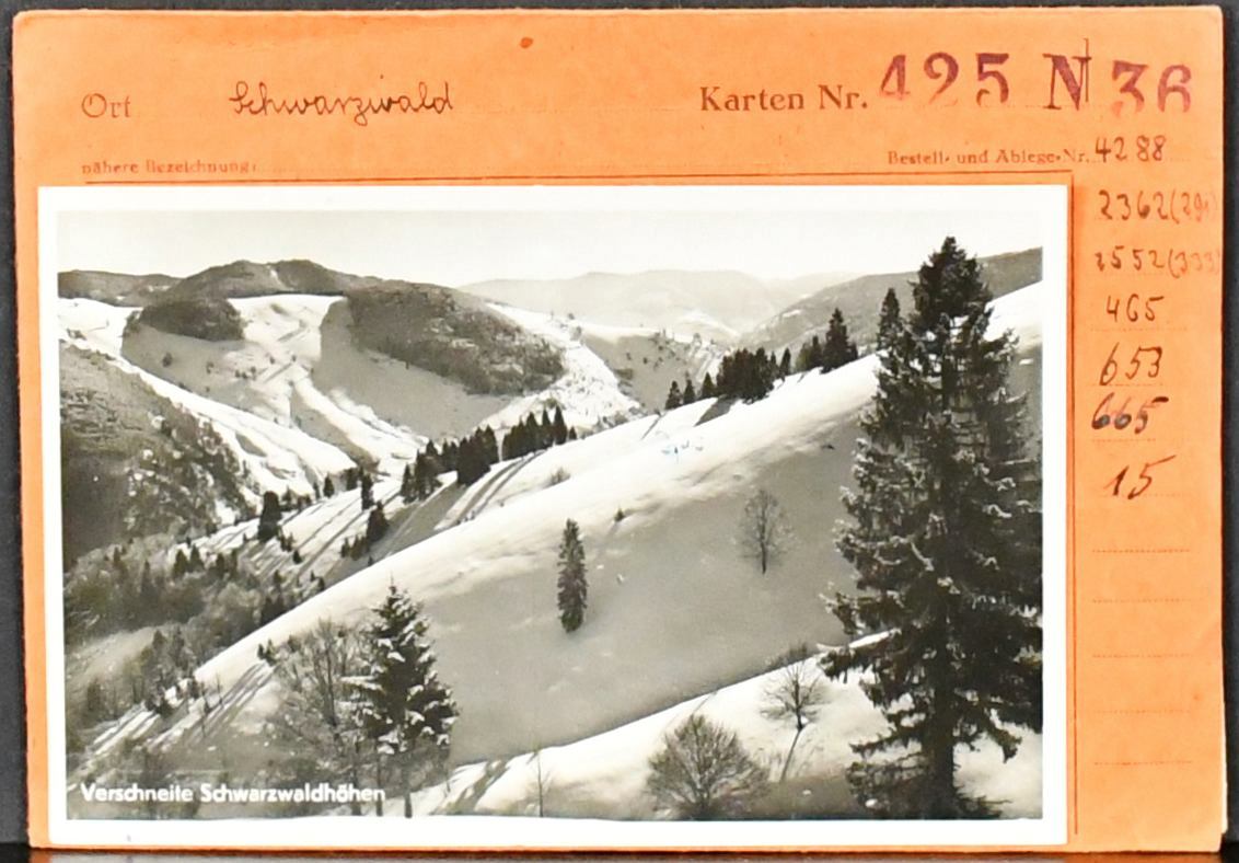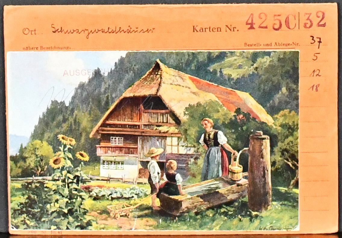 Schwarzwald, ca. 53 Musterkarten (aus dem Archiv Metz) im Karton, dabei Trachten, Wintersport, Schwarzwaldhäuser, Künstlerkarten usw.