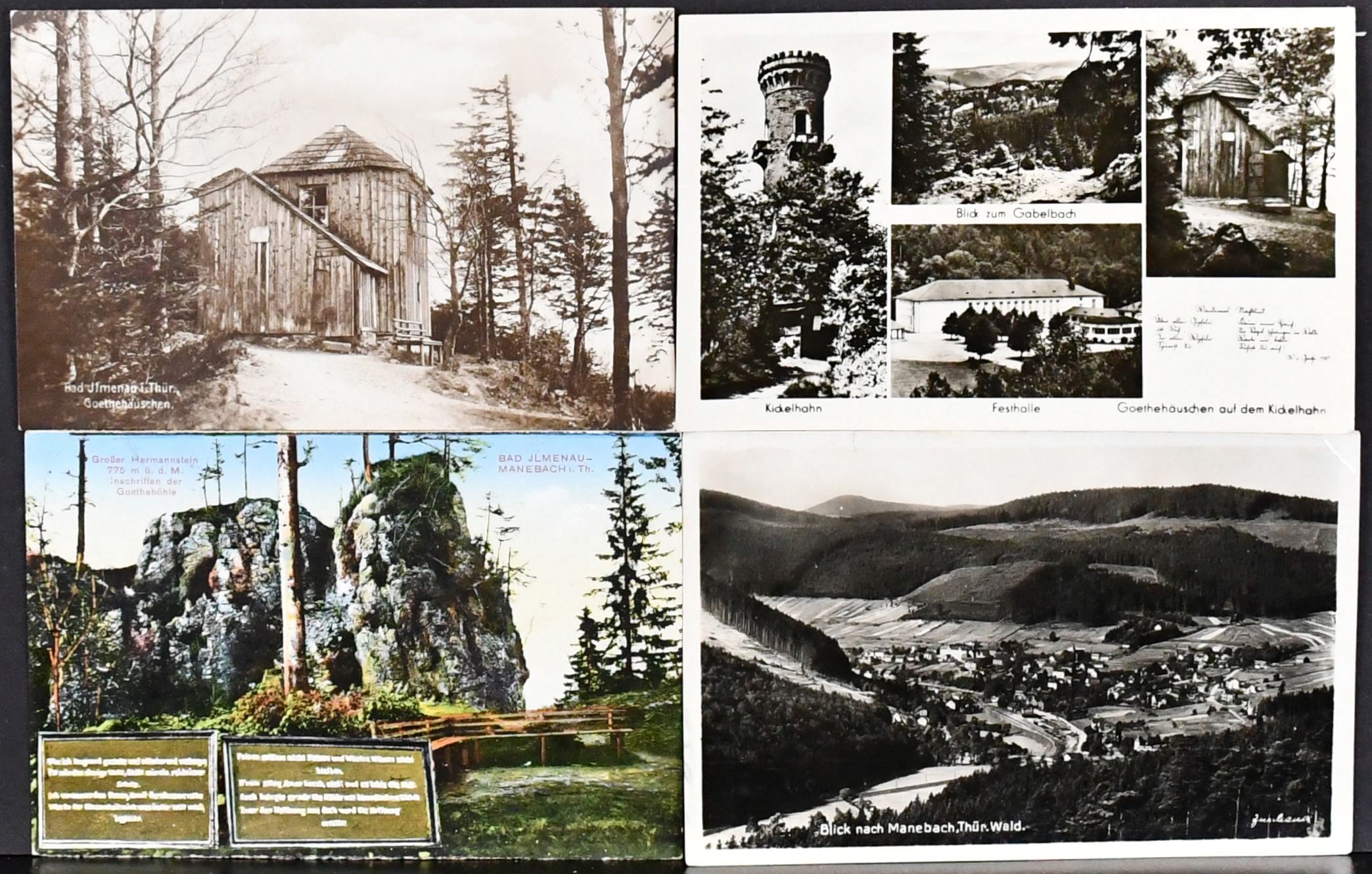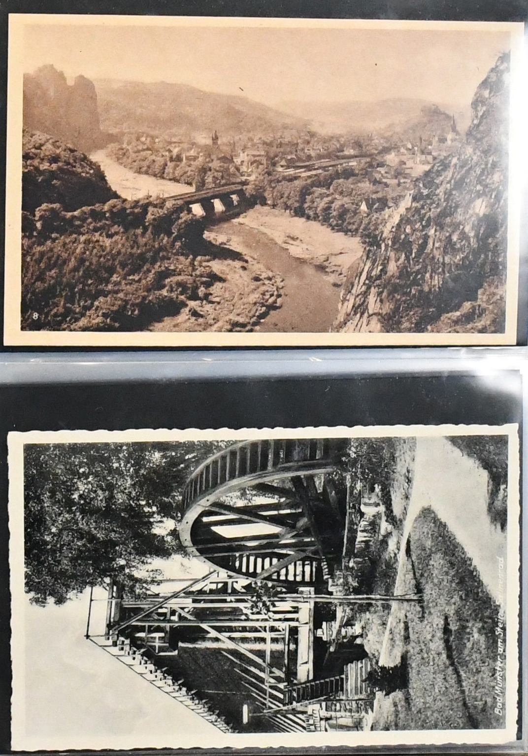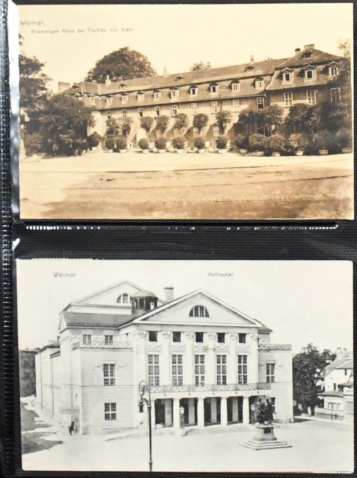 Thüringen, beachtliches schwarzes Album mit 200 gut erhaltenen, überwiegend s/w-Ansichtskarten, von 1910 bis 1945. Dabei historische Ansichten von Schwarzburg, Bad Blankenburg, Thüringer Wald, Weimar u.v.m.