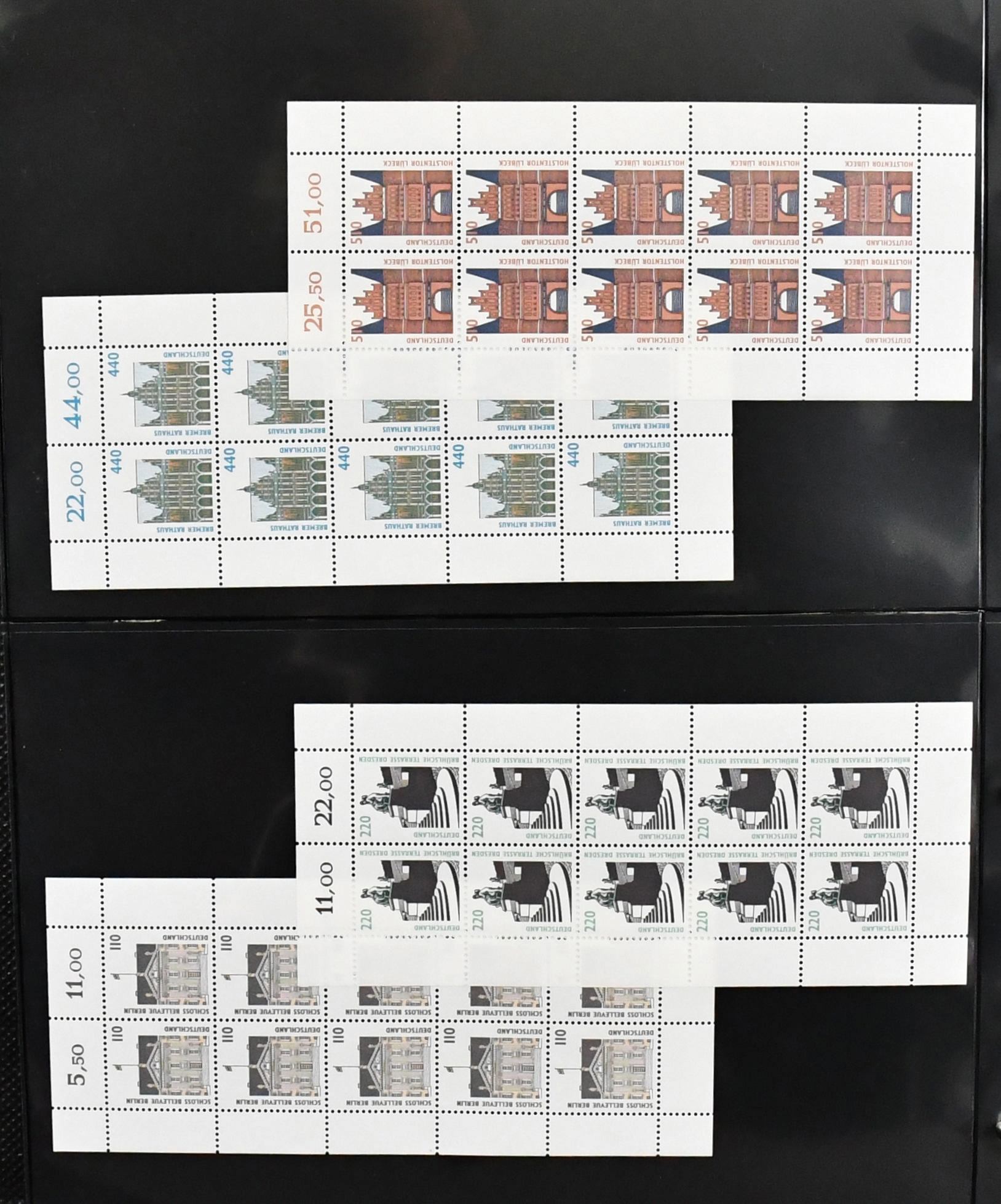 Bund, postfrische Zehnerbogen-Sammlung der 90er Jahre, im Ringbinder. Dabei einige kpl. Zuschlagssätze. Der ehemalige Postpreis betrug bereits DM 1250,-. Enorm hoher KW