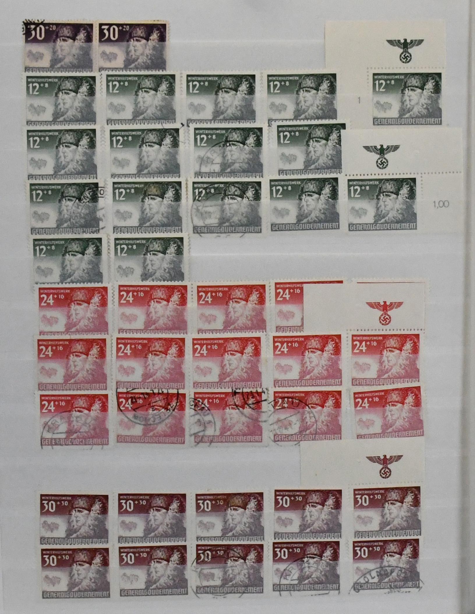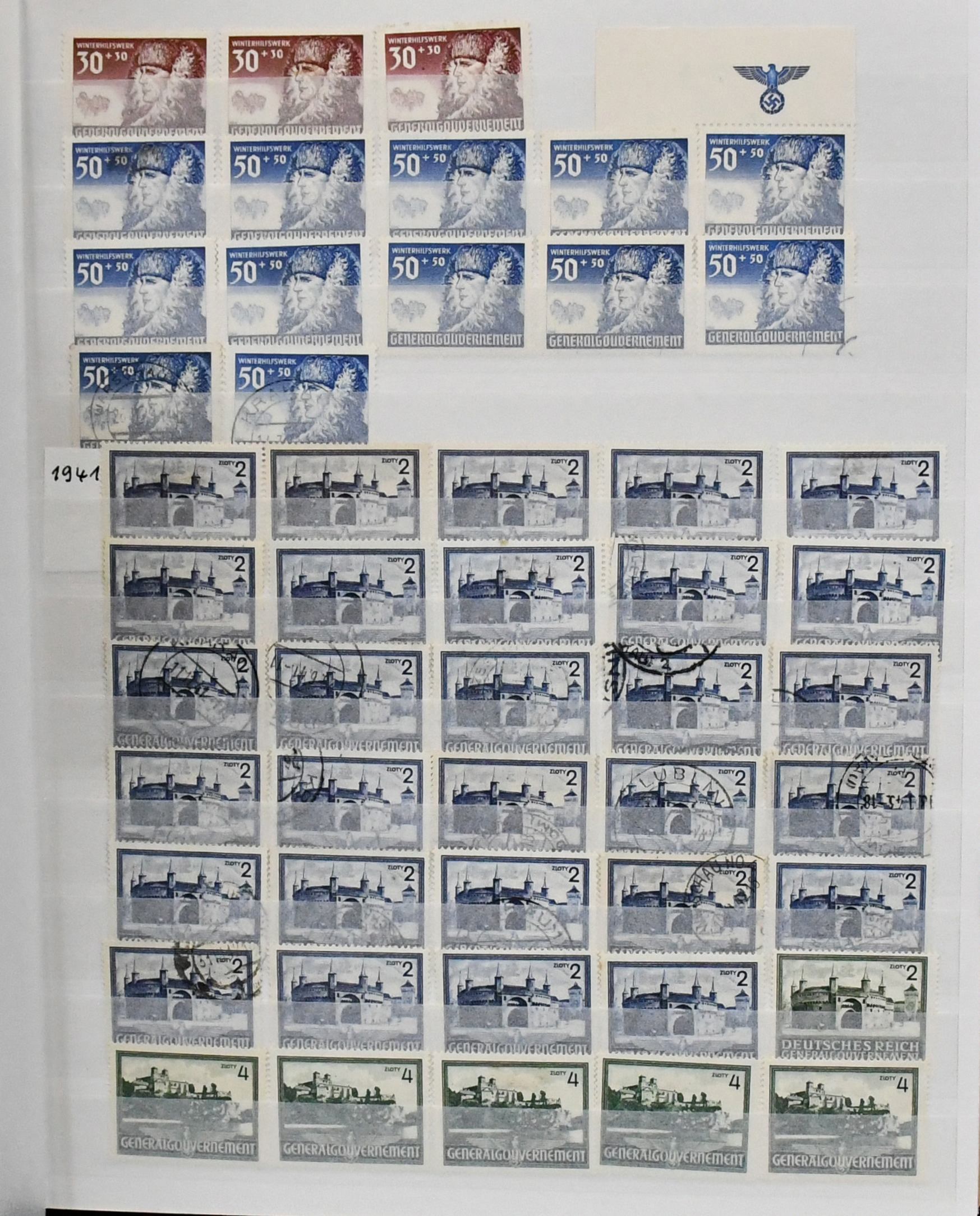 Generalgouvernement, umfangreiche, sortenreiche Zusammenstellung von etwa 4000 Werten in allen Erhaltungen, im dicken Schraubbinder. Das Gebiet mehrfach kpl. inkl. Nr. 14/39 mind. dreimal, Dienst Nr. 1/15 mind. siebenmal, viele ungezähnte Werte etc.