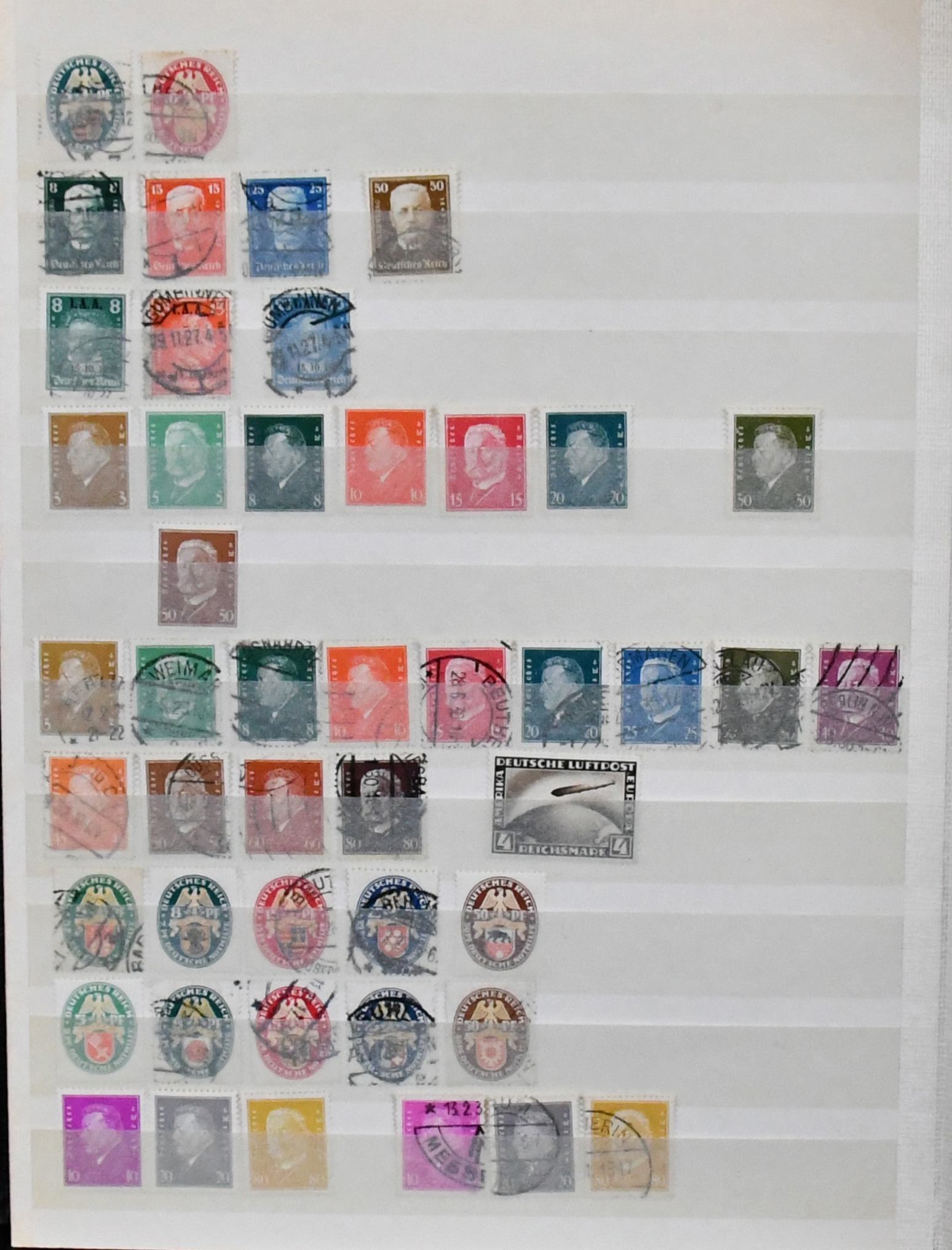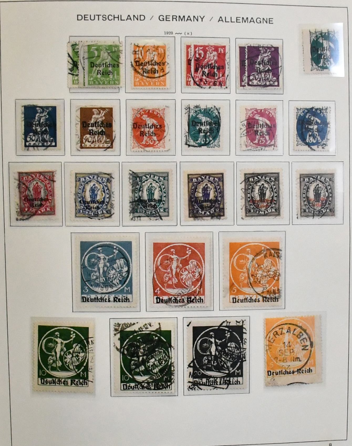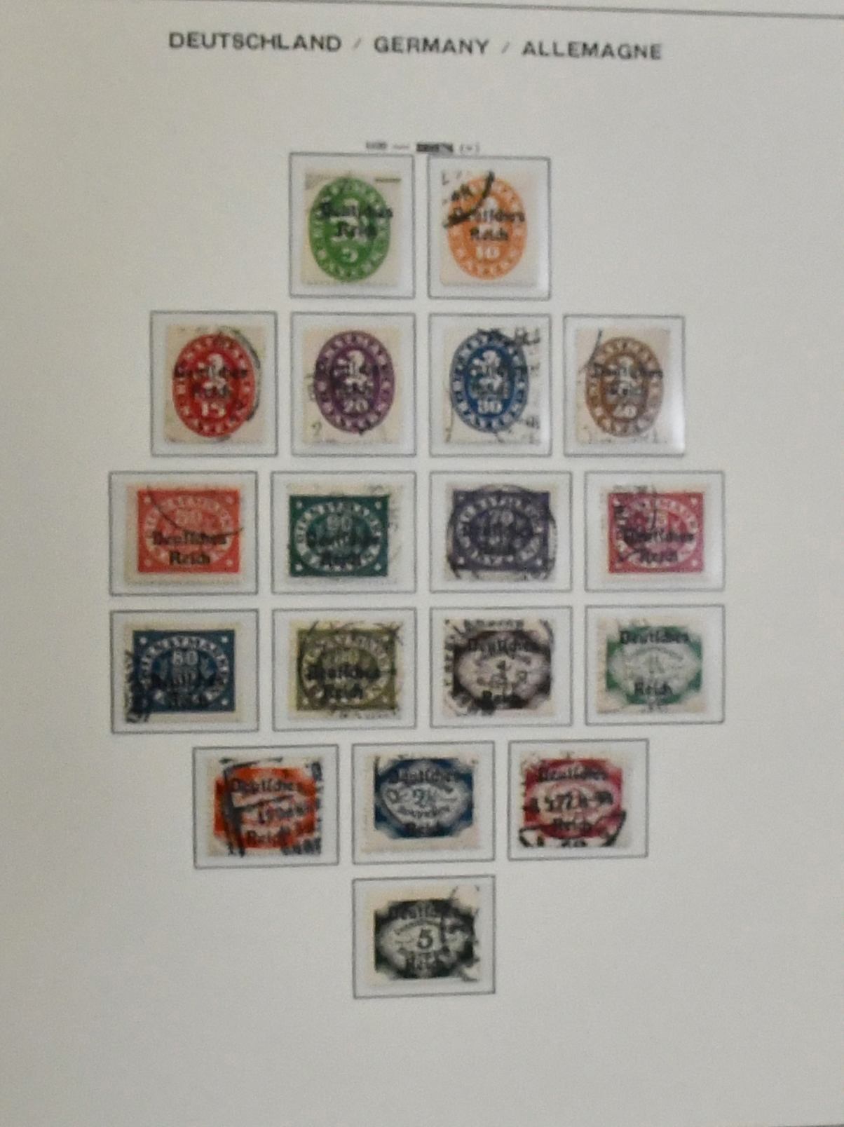 Deutsches Reich, 1872-1945, meist gestempelte (wenig ungebr.) Sammlung im Leuchtturm-Vordruckalbum, mit Brustschilden (etwas untersch.) ab Nr. 2/6, 8, 16/22, 23, 25, Pfennig/e, Krone/Adler, Germania, Flugpost Nr. I-III, Infla weitgehend gest., u.a. Nr. 133II, 137/38, Weimar mit Nothilfen, III. Reich mit Wagner, Flugpost, Stände u. Trachten, Winterhilfen, Bl. 7, 8, 9, 11, Nr. 695/97, Braune Bänder, sowie Dienst