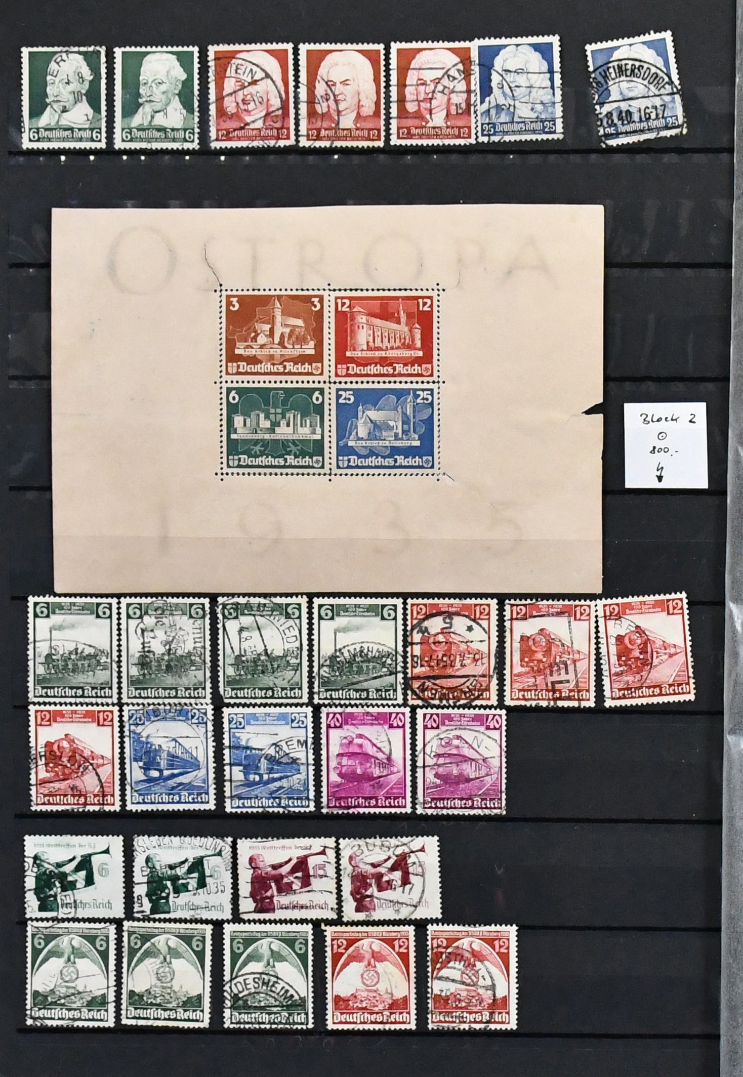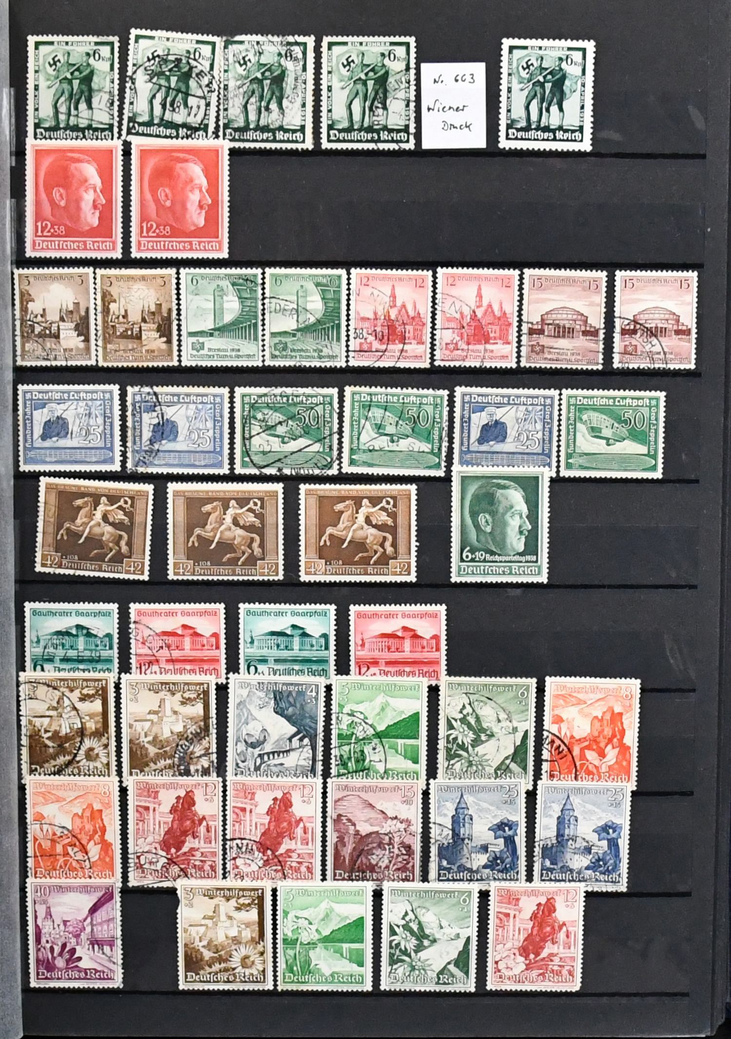 Deutsches Reich, 1875/1945, Slg. mit Schwerpunkt beim III. Reich, mit vielen besseren Ausgaben in allen Erhaltungen, im dicken E-Buch. Dabei Nothilfe-Sätze 1933/35, Ostropa-Block (Randmängel und daher nur die Einzelwerte gerechnet), Bl. 4/7, alle Winterhilfen, Nr. 529/39 usw., von 1938-1945 kpl., inkl. Nr. 695/99, 716/29 etc. Mi. 4500,-