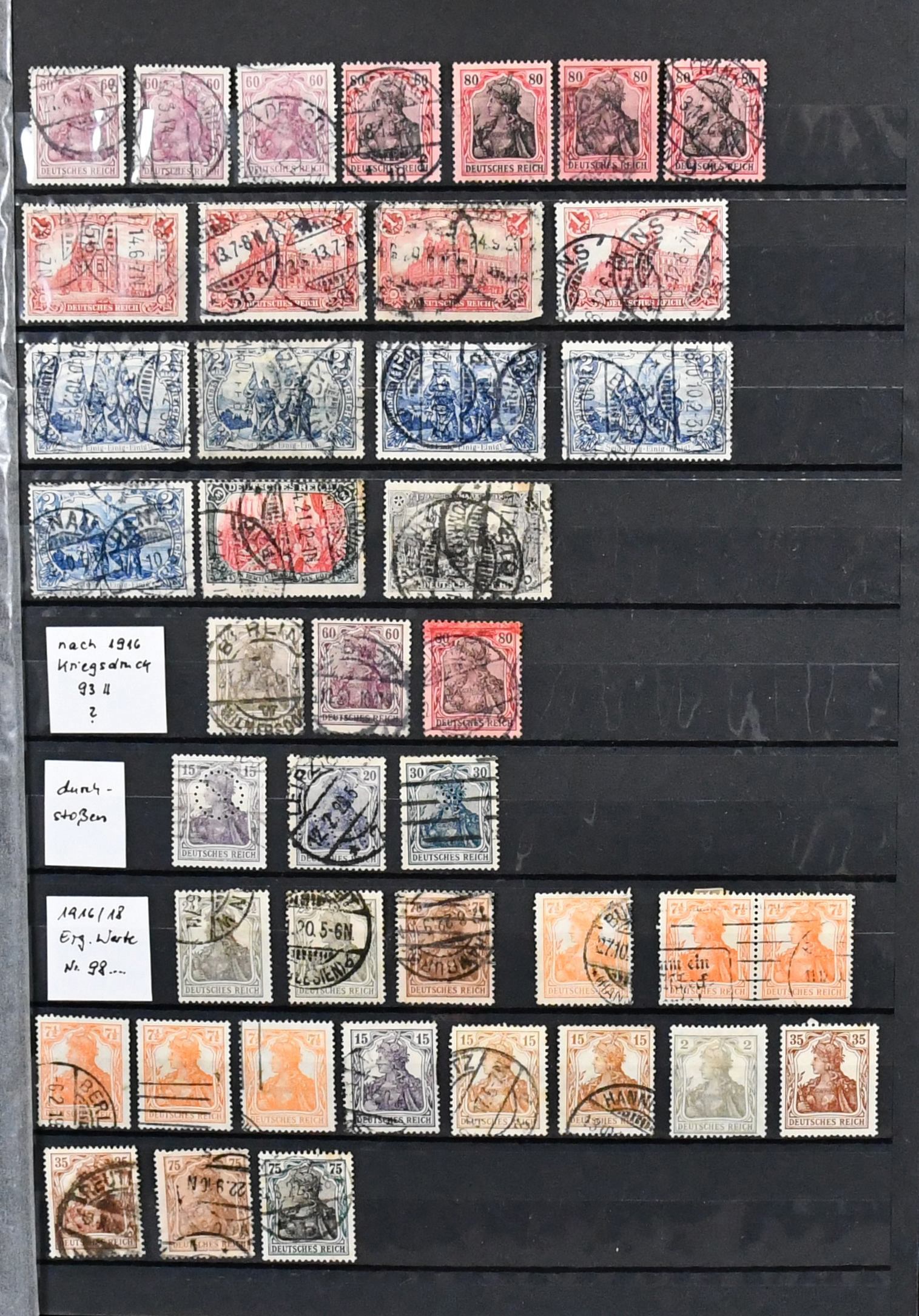 Deutsches Reich, 1872-1945, gemischte Sammlung in allen Erhaltungen ab Kaiserreich, mit Brustschilden ab Nr. 1, 6, 21, 24 (Mgl.), 27, Pfennig/e, Krone-Adler mit Farbnuancen, Germania, Infla teils doppelt, Weimar mit Nothilfen, III. Reich weitgehend kpl. mit Stände, Trachten, WHW, einigen Blocks etc., sowie Dienst