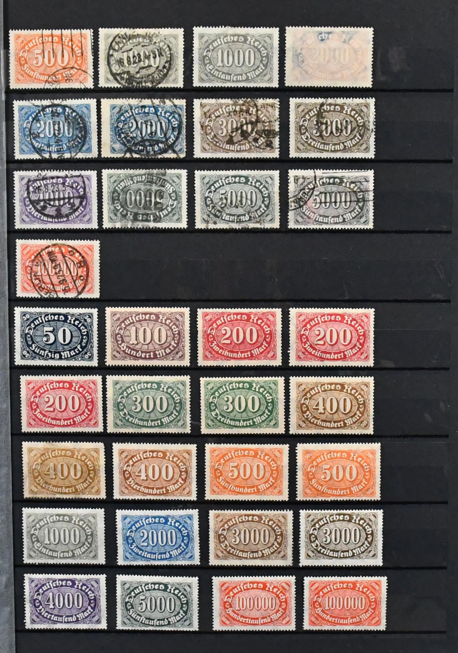 Deutsches Reich, 1872/1945, Slg. mit Infla inkl. einiger besserer gest. und geprüfter Werte wie Nr. 133II, Nr. 181 u. 332, Weimar mit Nr. 350, IAA-Satz, Flugpost-Satz 1926, viel III. Reich, u.a. mit 1 u. 4 RM Chicaofahrt gest. (Mi. 750,-), Nothilfen 1933/34 gest. (Mi. 520,-) usw. Dazu Dienst ab gest. Nr. 1/14. Mi. 8000,-