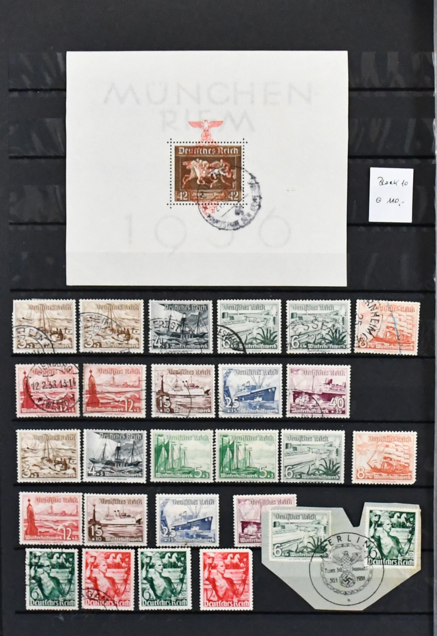 Deutsches Reich, 1872/1945, Sammlung, beginnend mit einigen Brustschilden, Infla, viel III. Reich (alleine 2600,- Mi.), inkl. Nr. 499/507 gest. (Mi. 380,-), Bl. 11 postfr. (340,-), Danzig-Abschied gest. (220,-), weitere Nr. 728 PF I ungebr. (170,-) usw., bis postfr. Nr. 909/10. Sehr hoher Gesamt-KW