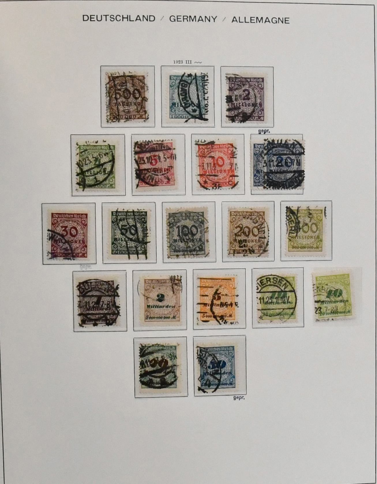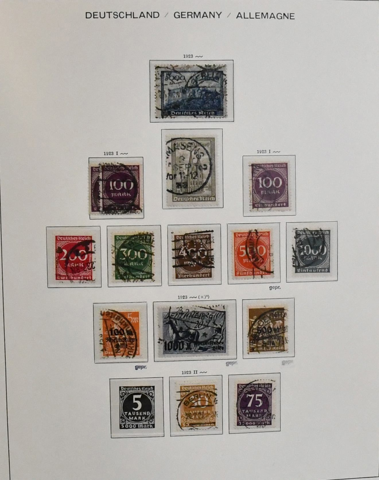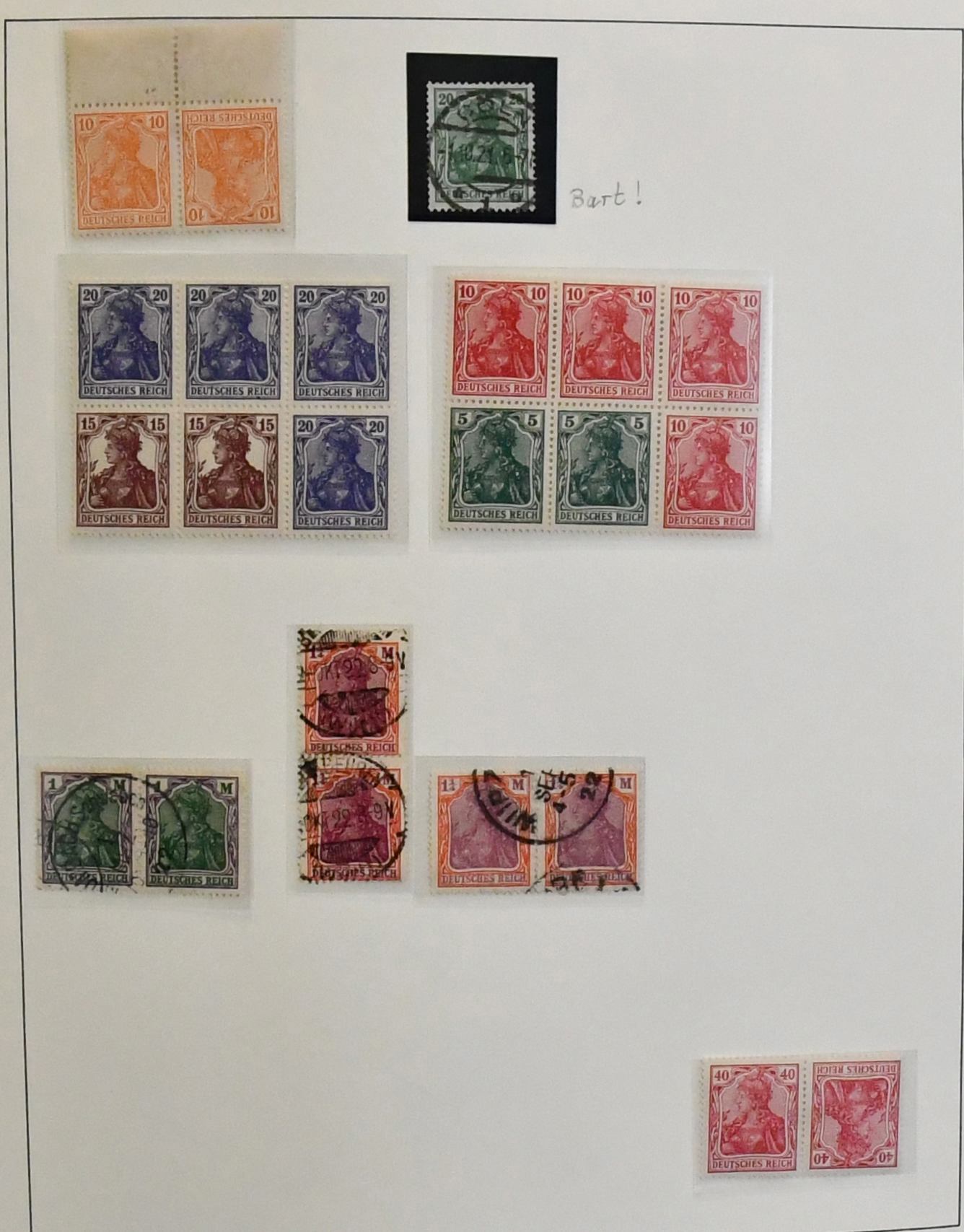 Deutsches Reich, 1872-1932, hochwertige Sammlung in beiden Erhaltungen im Schaubek-Vordruckalbum, beginnend mit einem guten Brustschildteil, u.a. mit Nr. 1-10 gest., 12(4), 13(2), 16-22, 24, 27(3) etc., zusätzlich mit Belegen, Einheiten und Stempeln, Germania sehr reichhaltig mit u.a. Nr. 66III, gepr. Jäschke, Infla mit vielen guten gest. und gepr. Werten, z.B. Nr. 178, 190, 245, 258-60, 330 usw., Weimar mit guten Ausgaben wie z.B. Nr. 401 postfr. vom Unterrand, 461-62 je auf Briefstück etc., ferner sieben Zeppelin-Belege, u.a. mit Freistempler der 3. SAF 1932, Zuleitungen Schweiz und Österreich, Nr. 438 auf Brief der Magdeburg-Fahrt 1931 usw. Generell mit vielen geprüften Stücken, sowie mit Einheiten, Randstücken, Belegen und Briefstücken aufgelockert. Völlig unberührtes Objekt mit Substanz