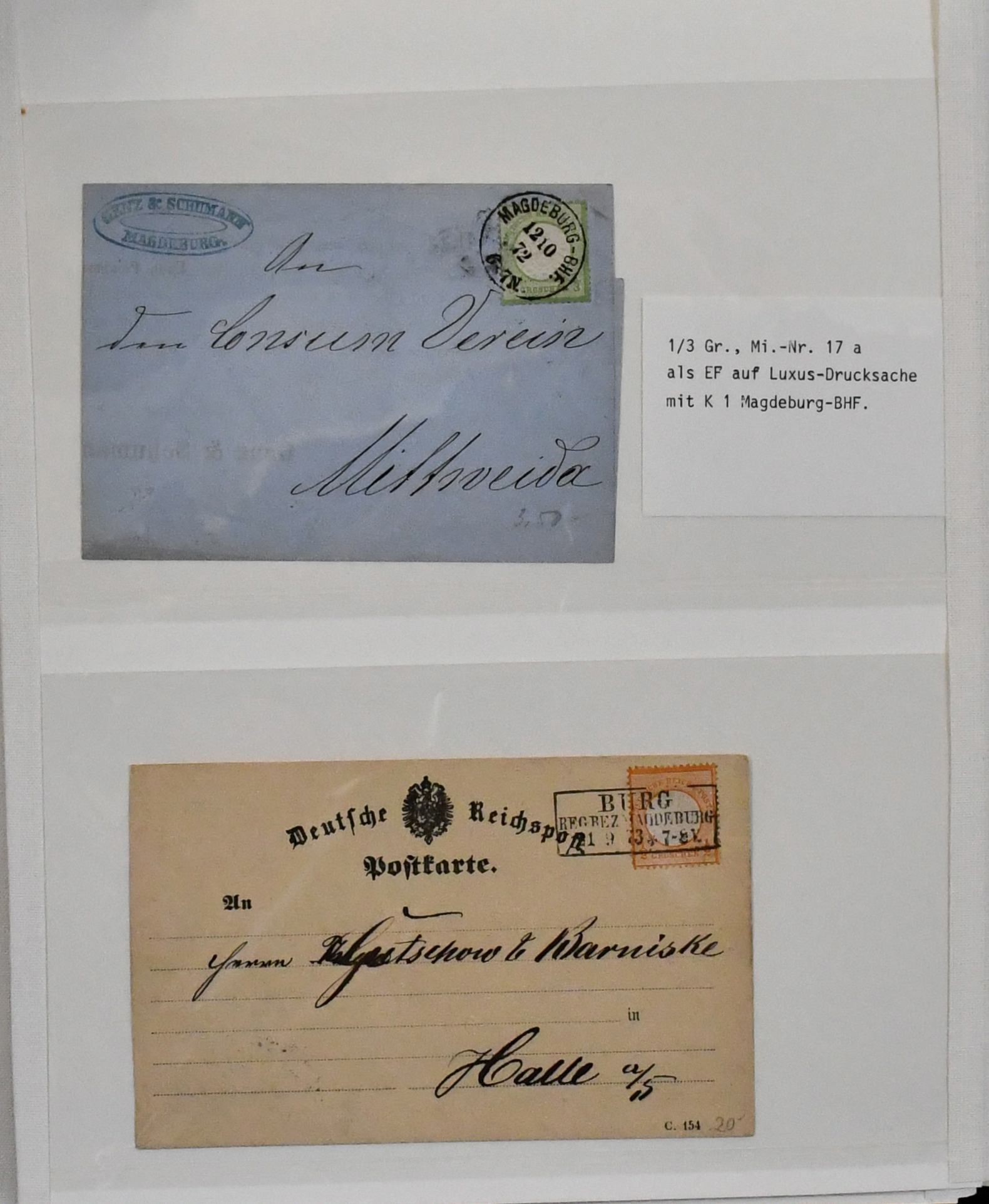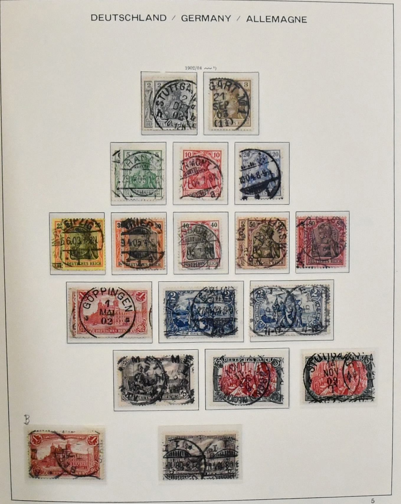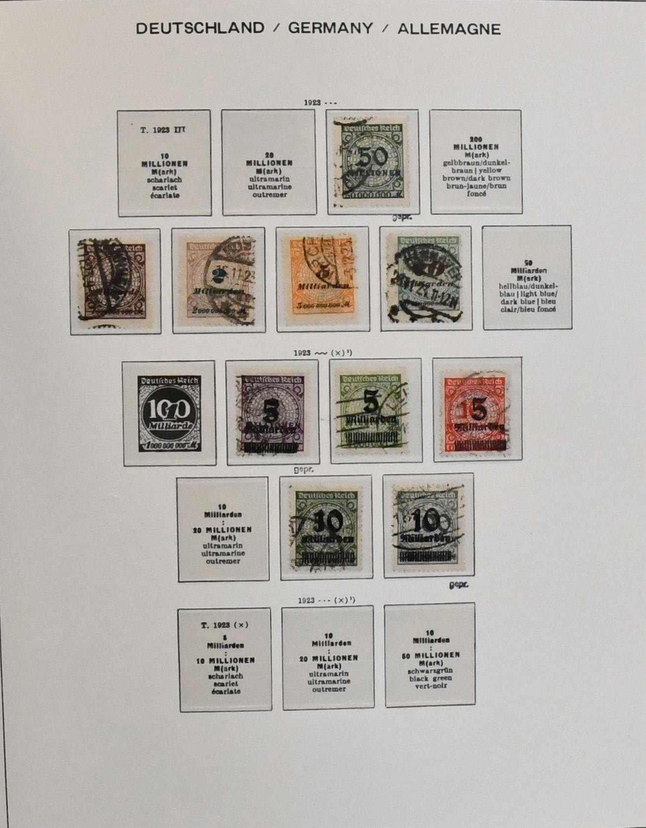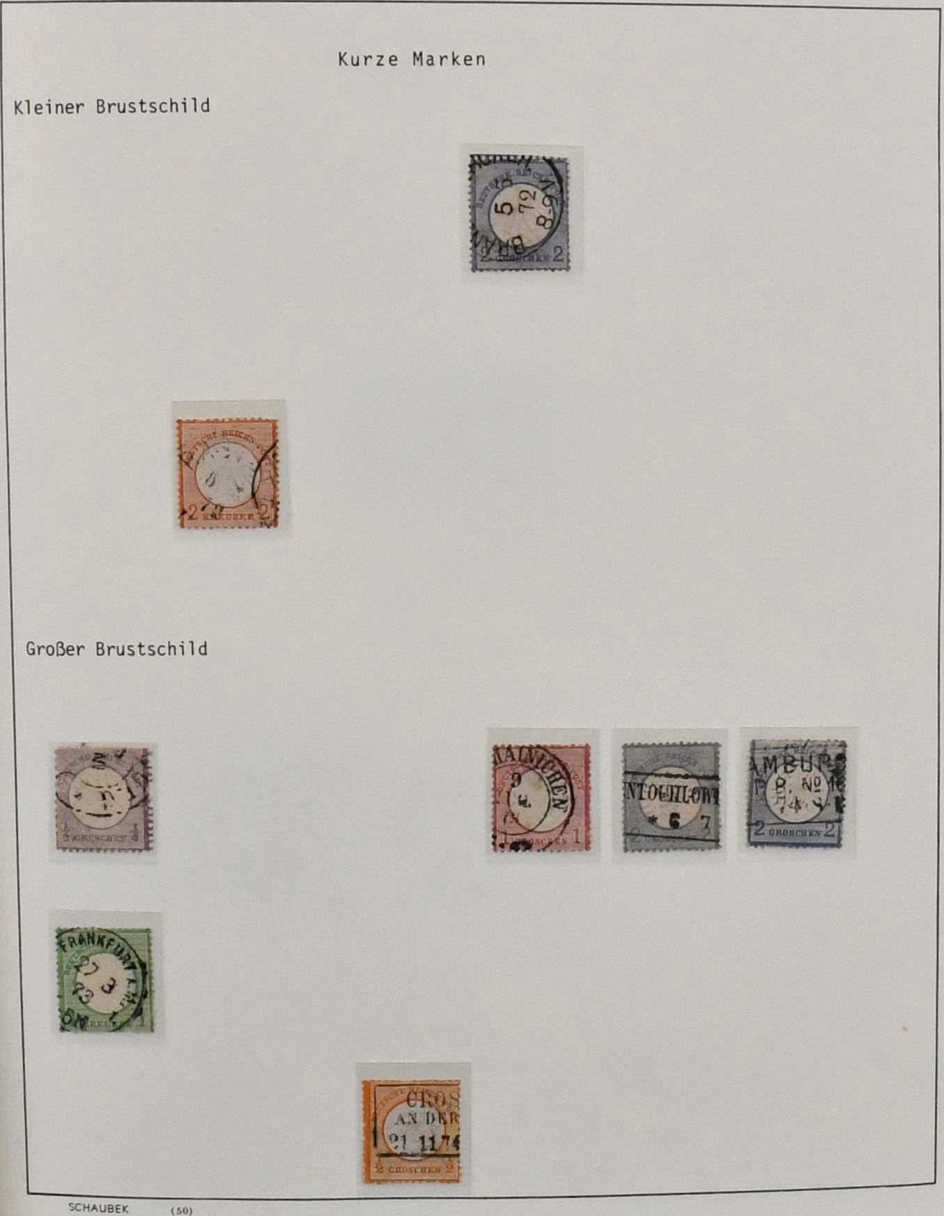 Deutsches Reich, 1872/1923, gestempelte Slg., beginnend mit unterschiedlichem Brustschildteil mit alleine 4000,- Mi., inkl. Nr. 1/6, 11, Nr. 13 mit Federzug, 27b usw., auf SAFE-Vordrucken, ferner Germania mit einigen Querformaten, Infla inkl. Nr. 119/38 etc. Dazu unbewertet eine gest. Nr. 28 (Mi. 2800,-) mit Eckfehler