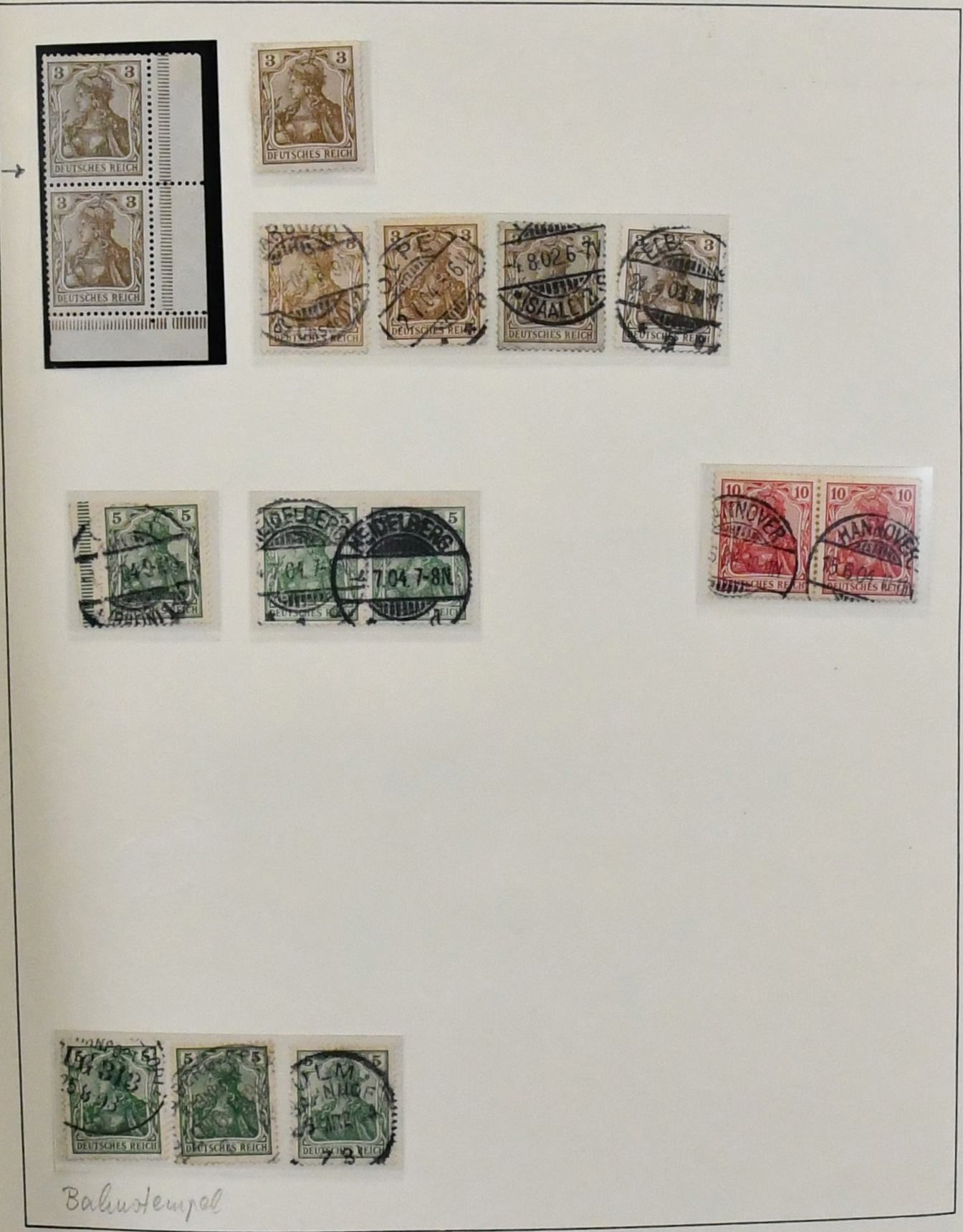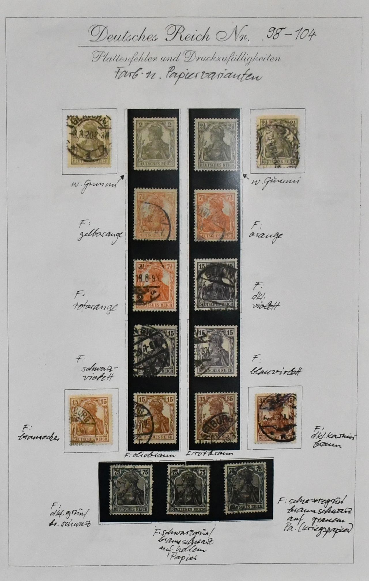 Deutsches Reich, Plattenfehler und Besonderheiten, 1872-1922, Spezialslg. im Ringbinder auf 47 selbstgest. Blättern, graphisch schön beschriftet und mit etwa 550 Werten sehr gut bestückt ab den Brustschilden, starker Teil Krone-Adler, sowie Querformate Germania ex Nr. A113-117