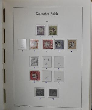 Deutsches Reich, 1872/1923, von Nr. 1-337, nur ohne Nr. 24, komplette Slg. auf alten Schaubek-Vordrucken. Dabei Nr. 1/11 gest., Nr. 12 mit Poststempel (Mi. 1700,-), die seltene Nr. 28 gest. (leider defekt und daher unberechnet), gute Nr. 66 (Mi. billigst 500,-), 75/76 ungebr. (Mi. 210,-), 79, sowie Infla Nr. 98/337 ungebr. kpl. Sehr hoher KW!