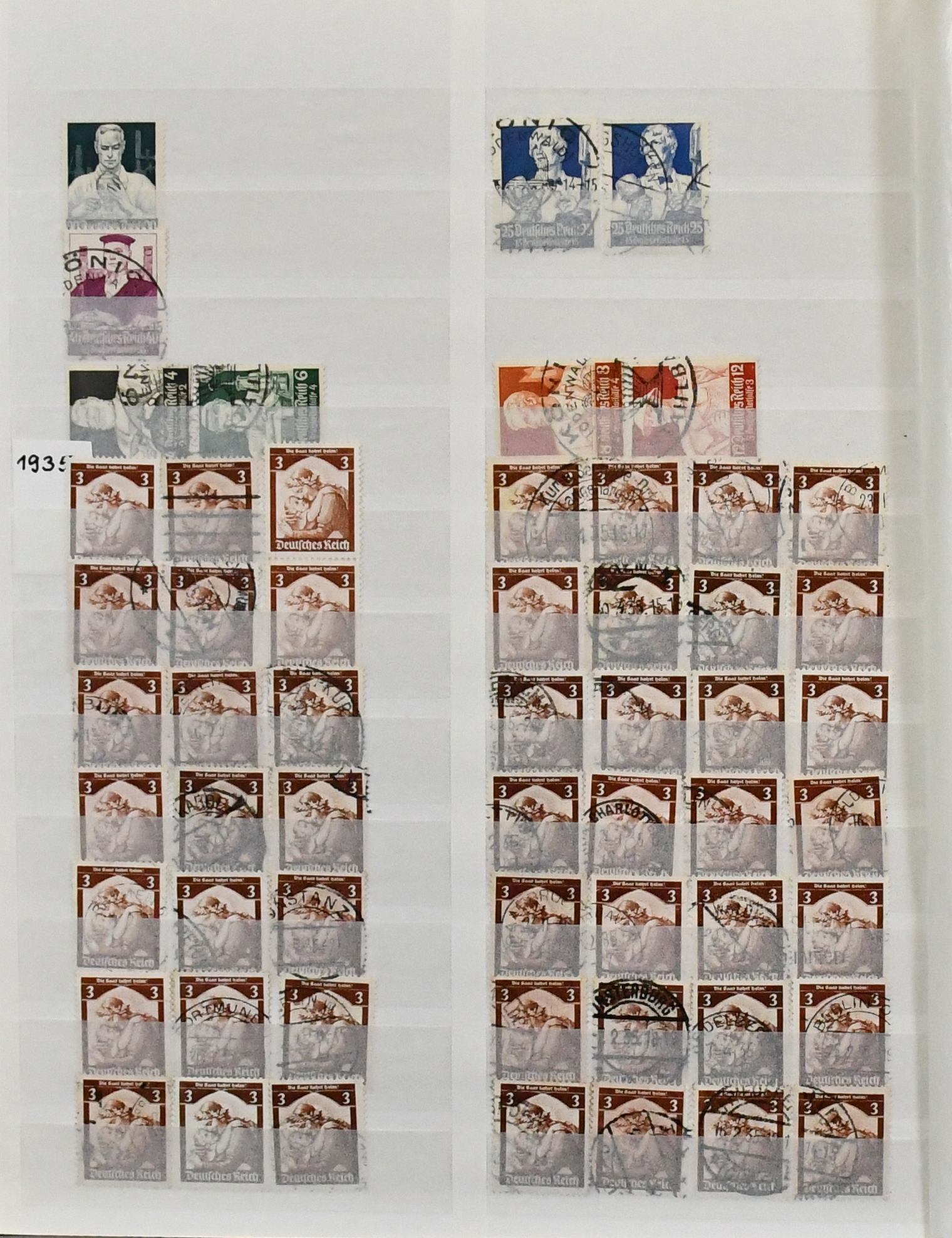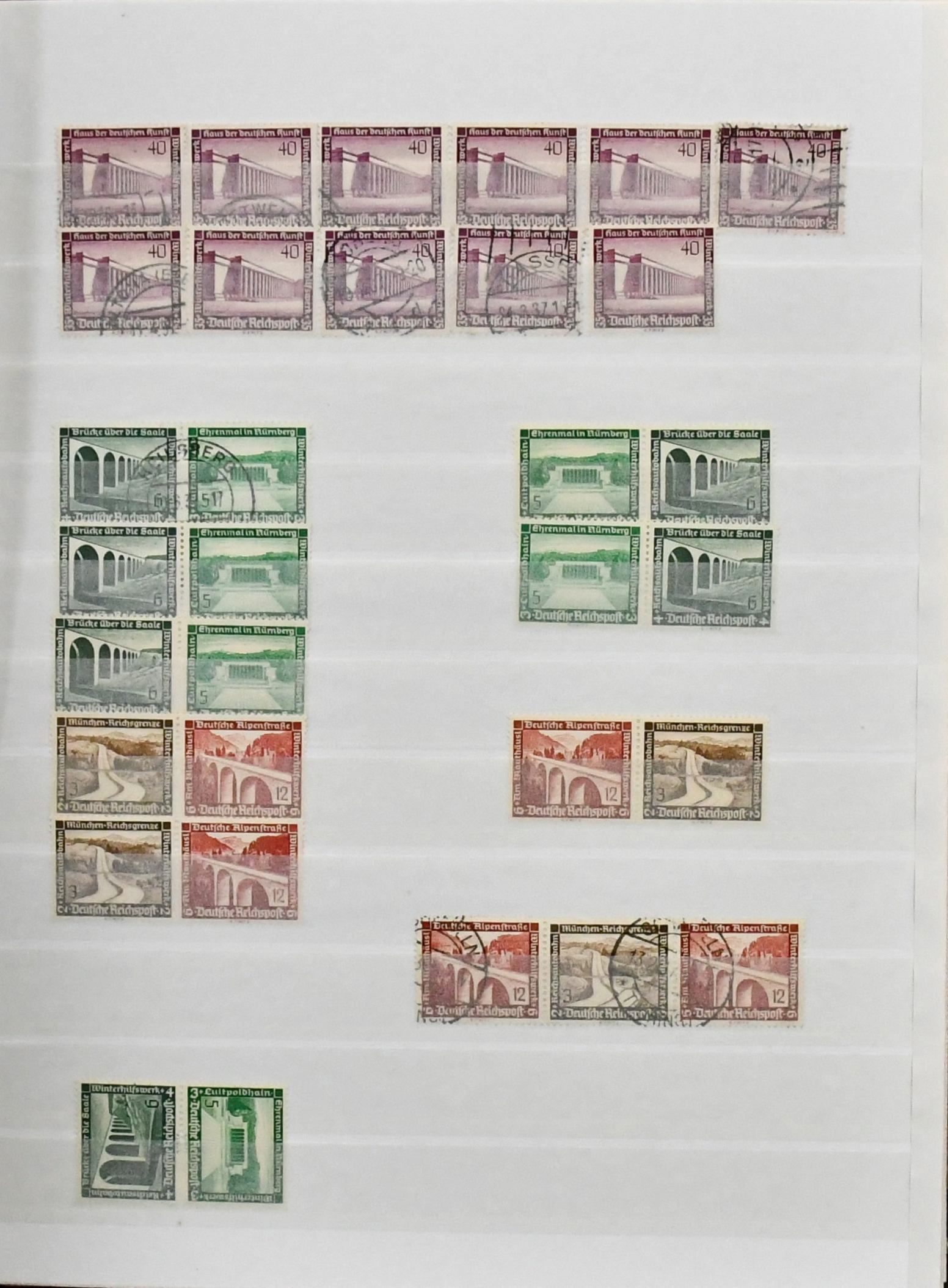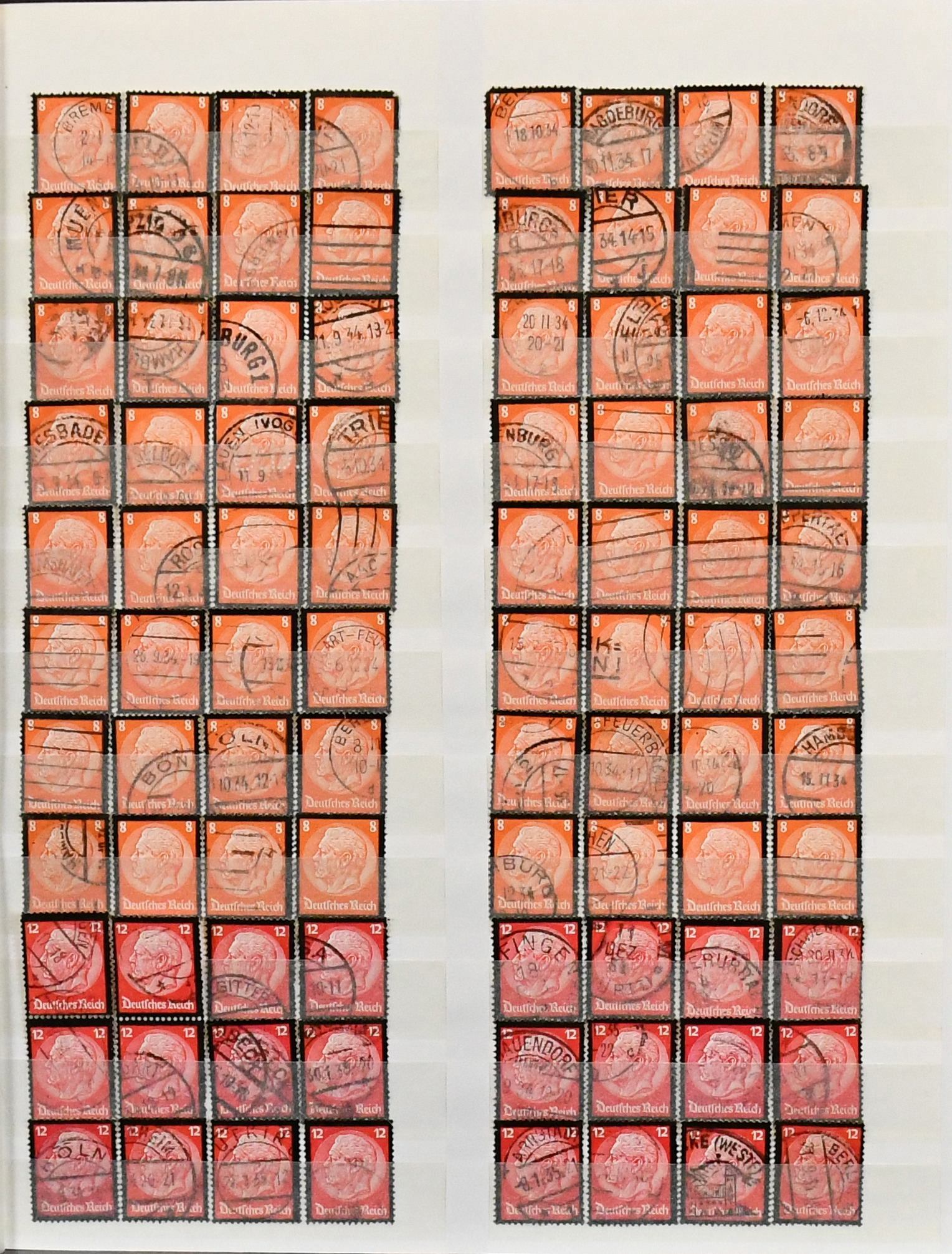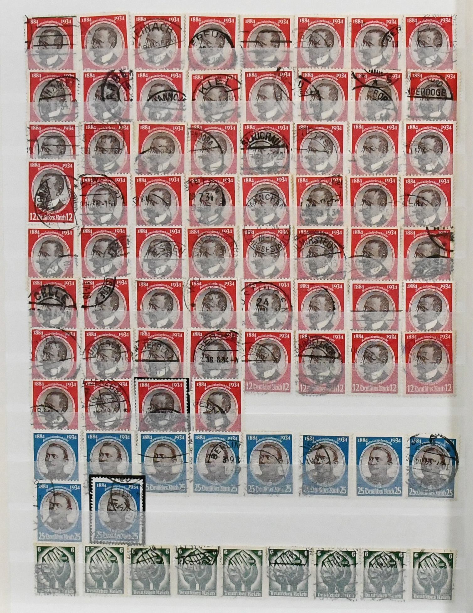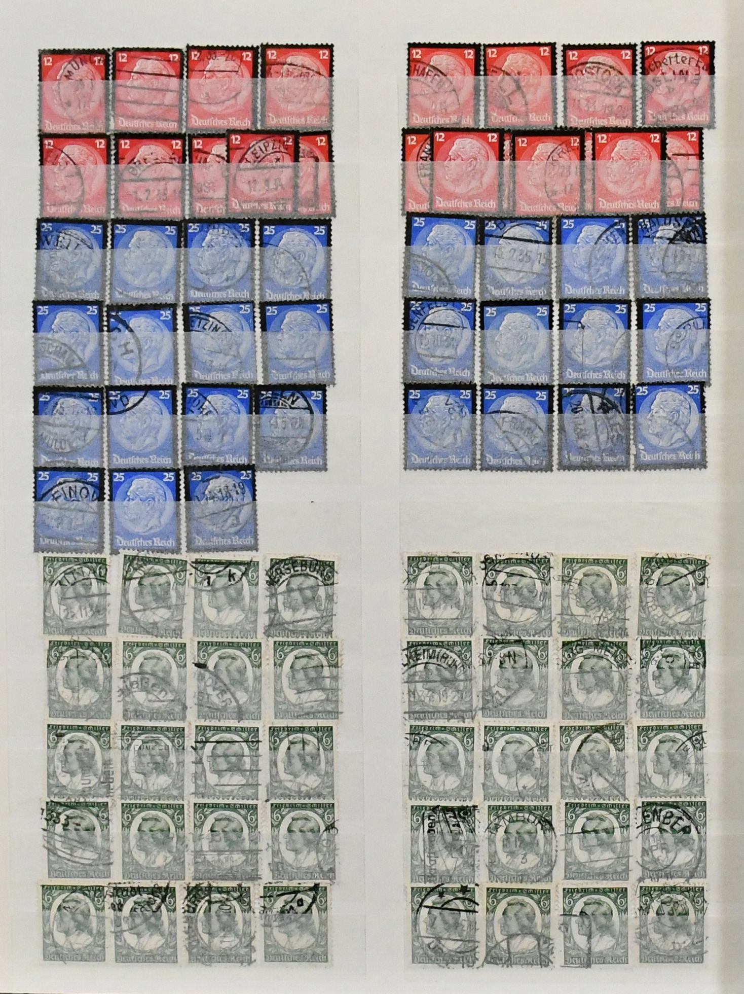 III. Reich, riesiger gestempelter Bestand von 9000 Werten aus den Jahren 1933/34, in zwei Bänden. Dabei u.a. Nothilfe-Sätze 1933/34, Nr. 529/39, 540/43 mehrf. usw. Mi. 8700,-