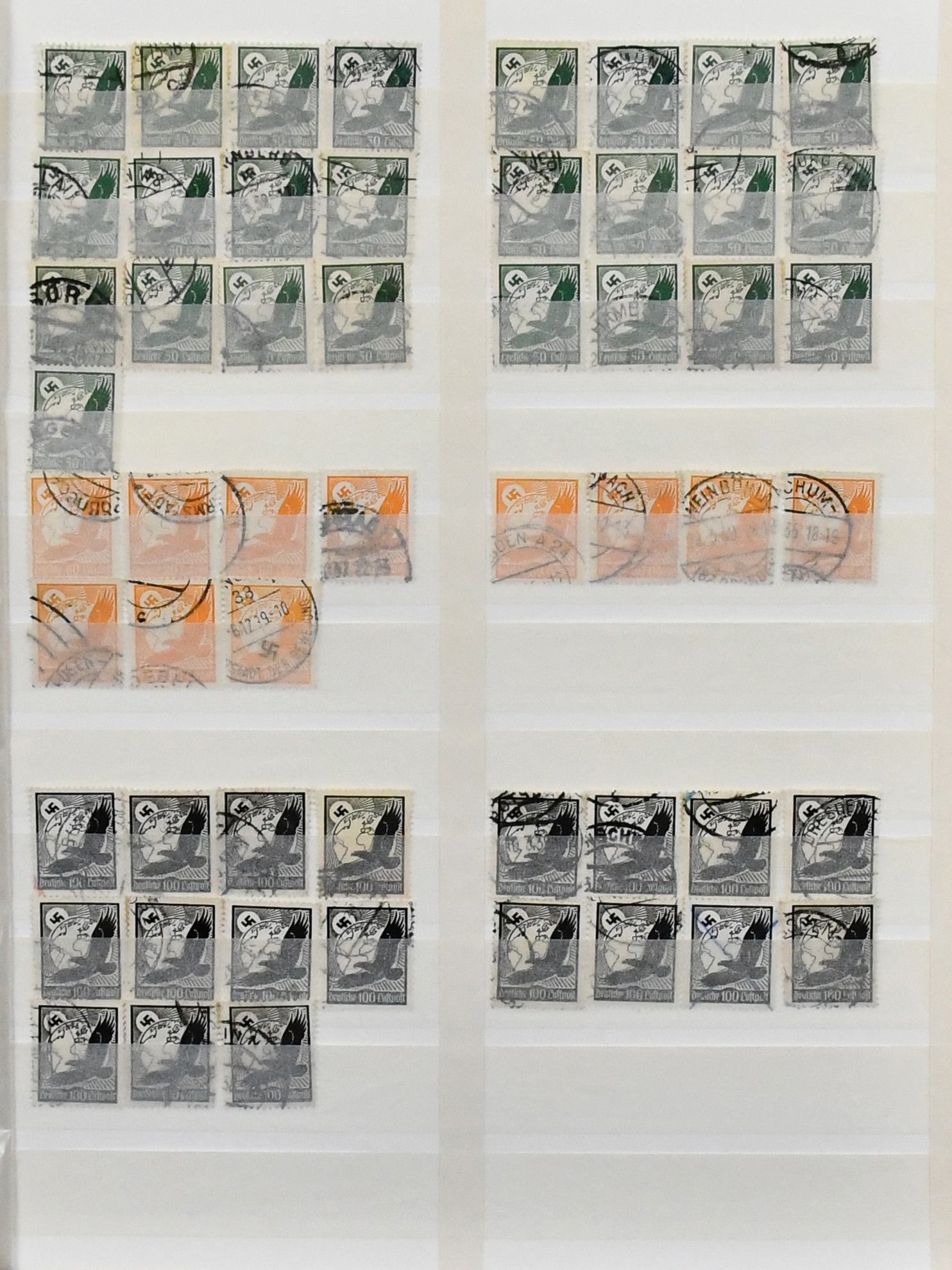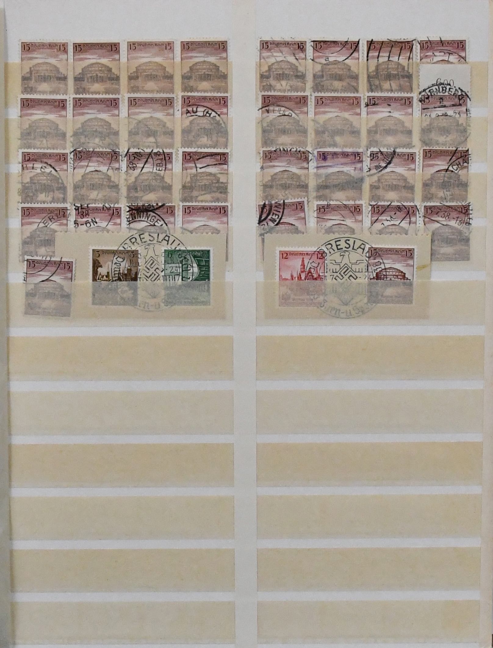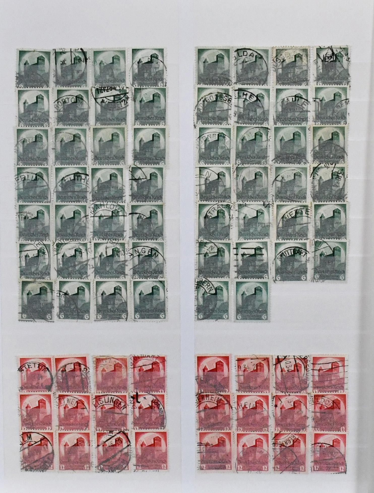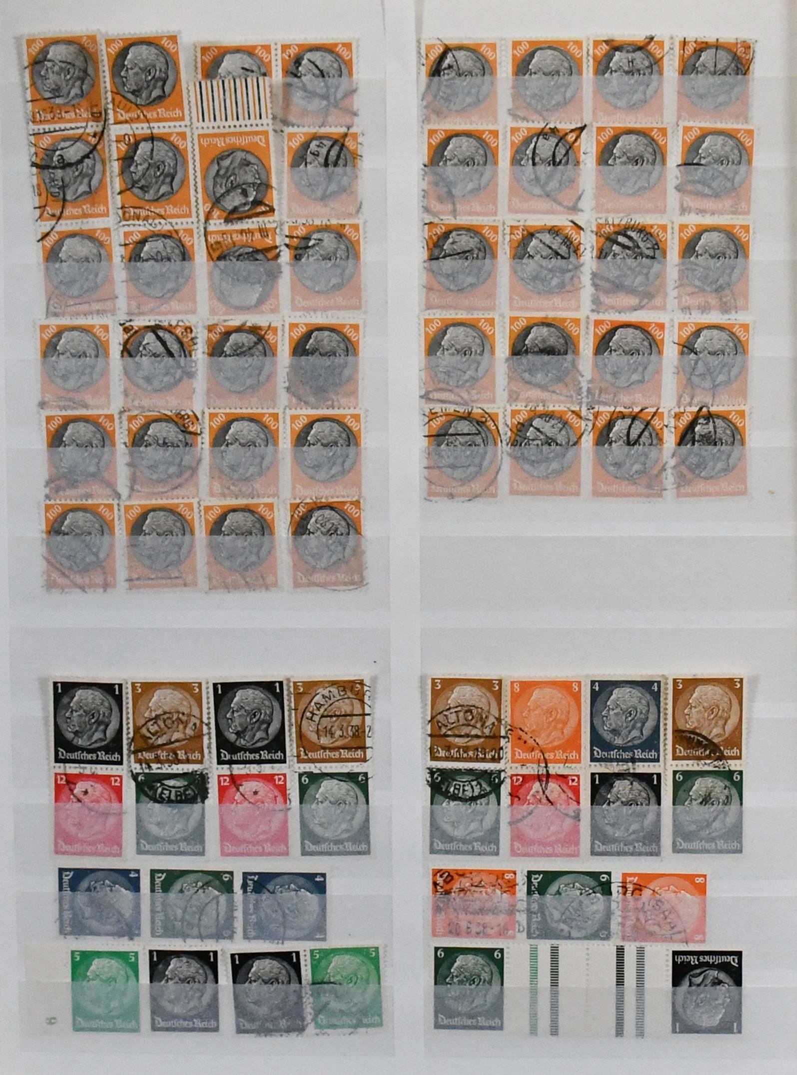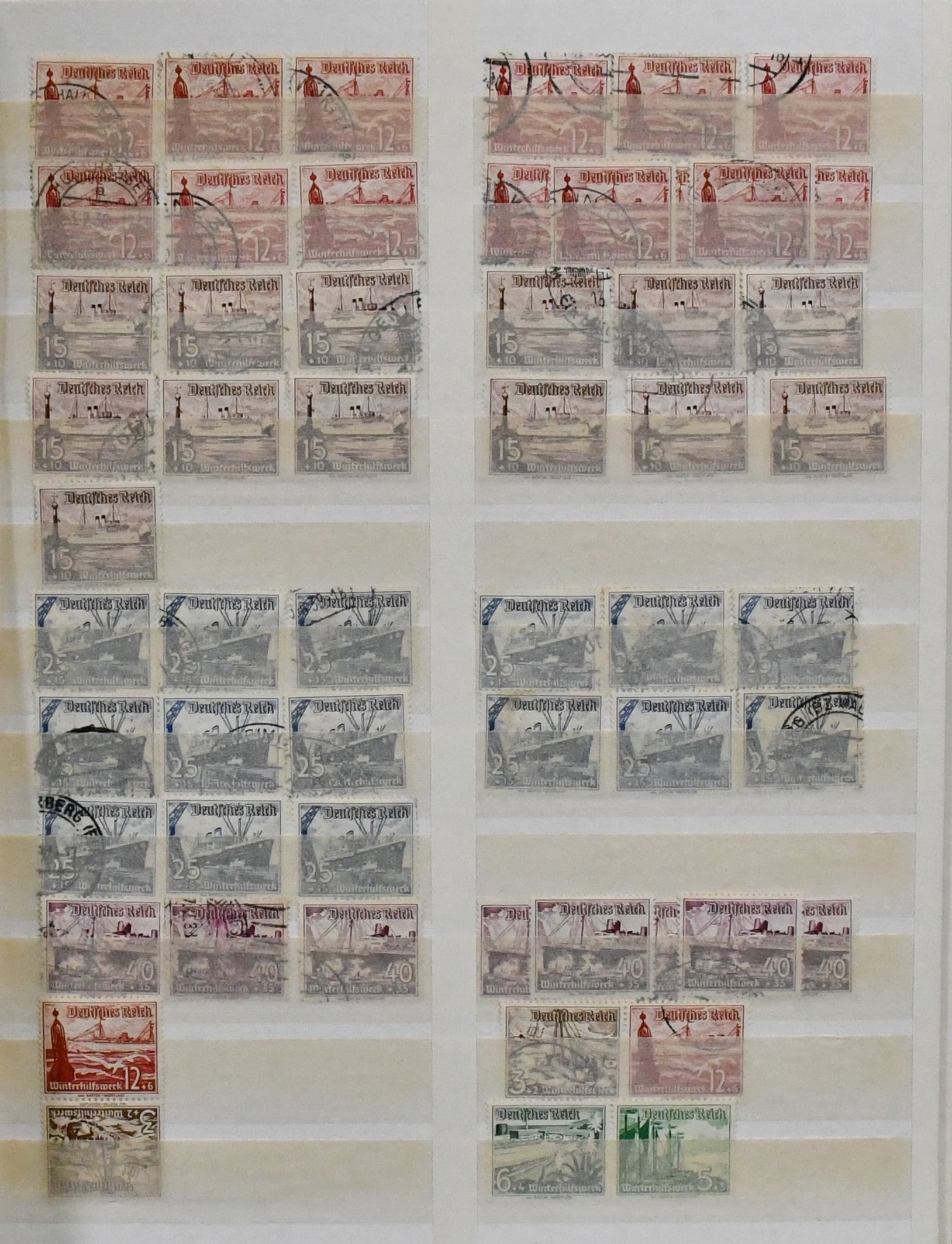 III. Reich, riesiger gestempelter Bestand von 9000 Werten aus den Jahren 1933/34, in zwei Bänden. Dabei u.a. Nothilfe-Sätze 1933/34, Nr. 529/39, 540/43 mehrf. usw. Mi. 8700,-