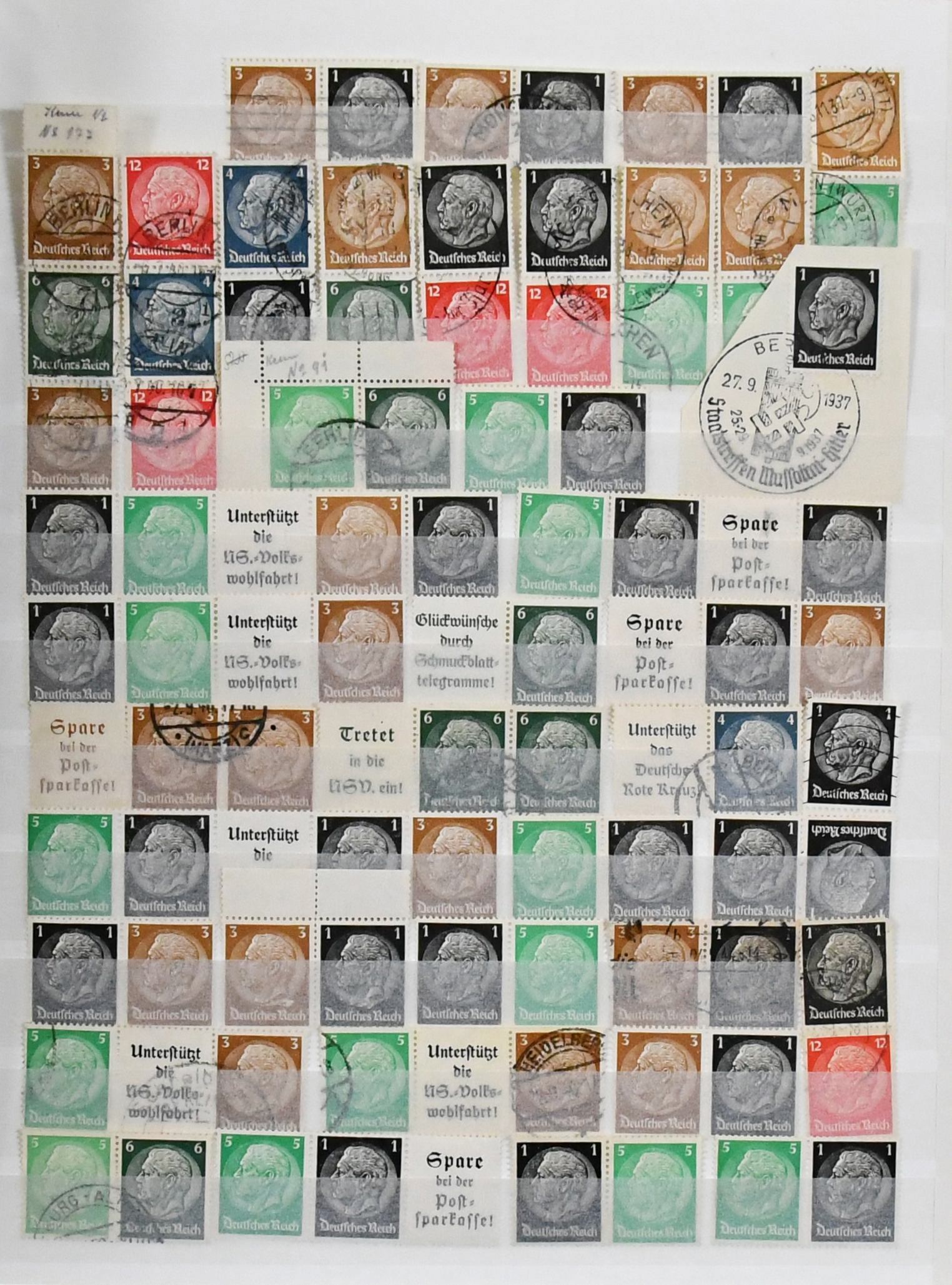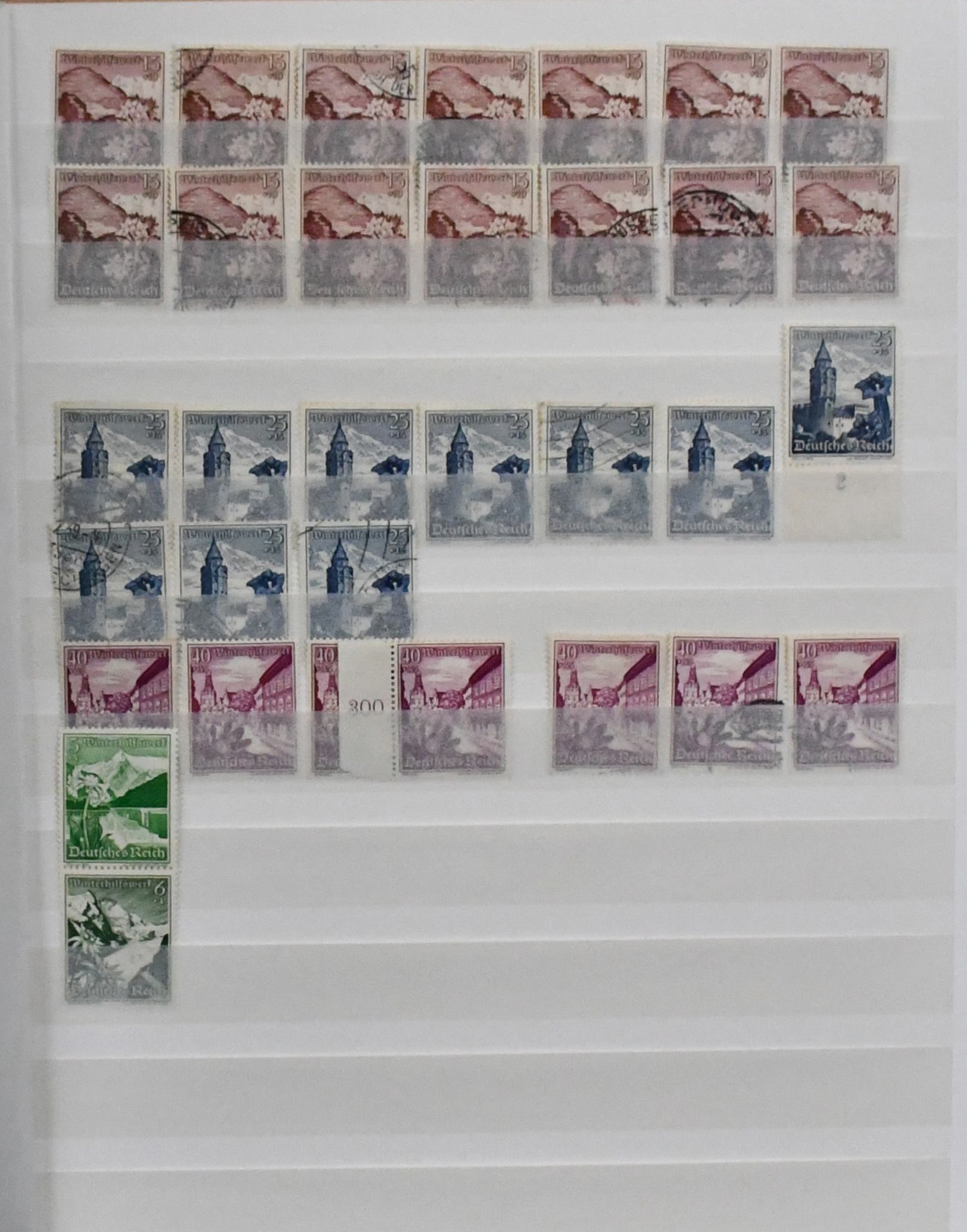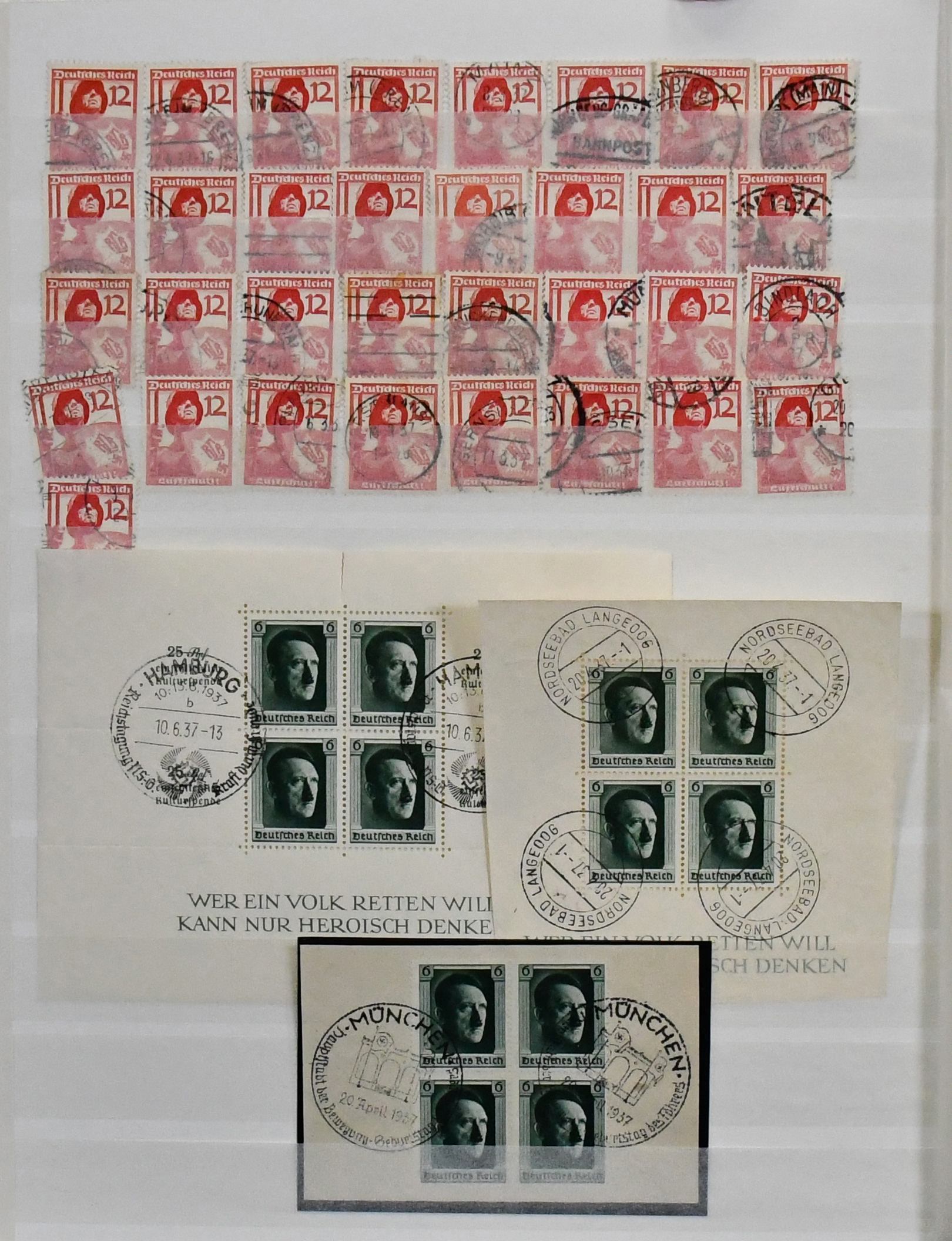 III. Reich, 1936/38, Partie von etwa 2400 Werten und 17 Blöcken, dabei viele WHW-Sätze, Nr. 671, Bl. 7/9 u. 11 je mehrfach, usw. Mi. 4000,-