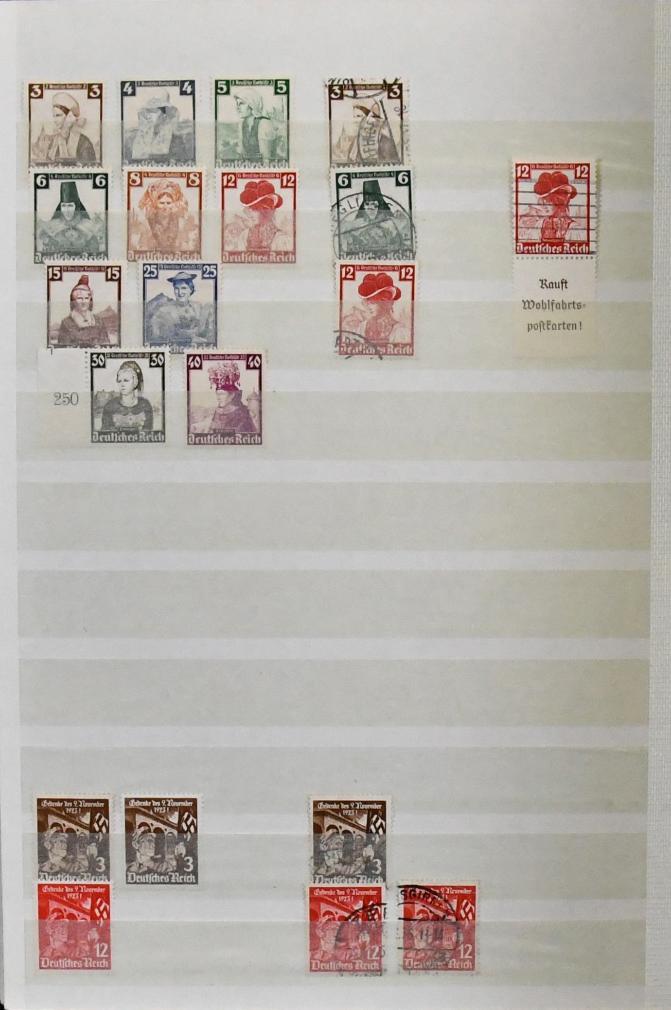 III. Reich, 1933-1945, hauptsächlich gest. Sammlungsteil inkl. guten Ausgaben wie Wagner, Kolonialforscher, Flugpost, gute WHW wie Stände, Trachten, Olympia, die Jahre ab 1938 auch postfr./ungebr., bis Nr. 909/10 normal und ungez.