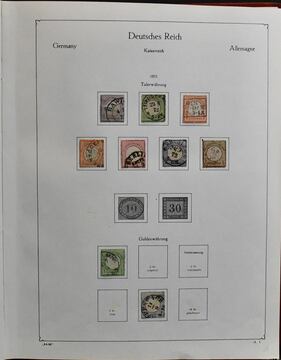 Deutsches Reich, 1872/1945, Slg. ab ungebr. Nr. 1 ohne Gummi, mit Nr. 2/5, 10, 17/18 ungebr., viel Infla, etwas Weimar, u.a. mit Nothilfe 1930 gest., sowie viel III. Reich ab Nr. 479/95, mit Nr. 609/16, Winterhilfen, 773/78 gest. usw. Dazu Dienst ab Nr. 1/8, alles im dicken E-Buch