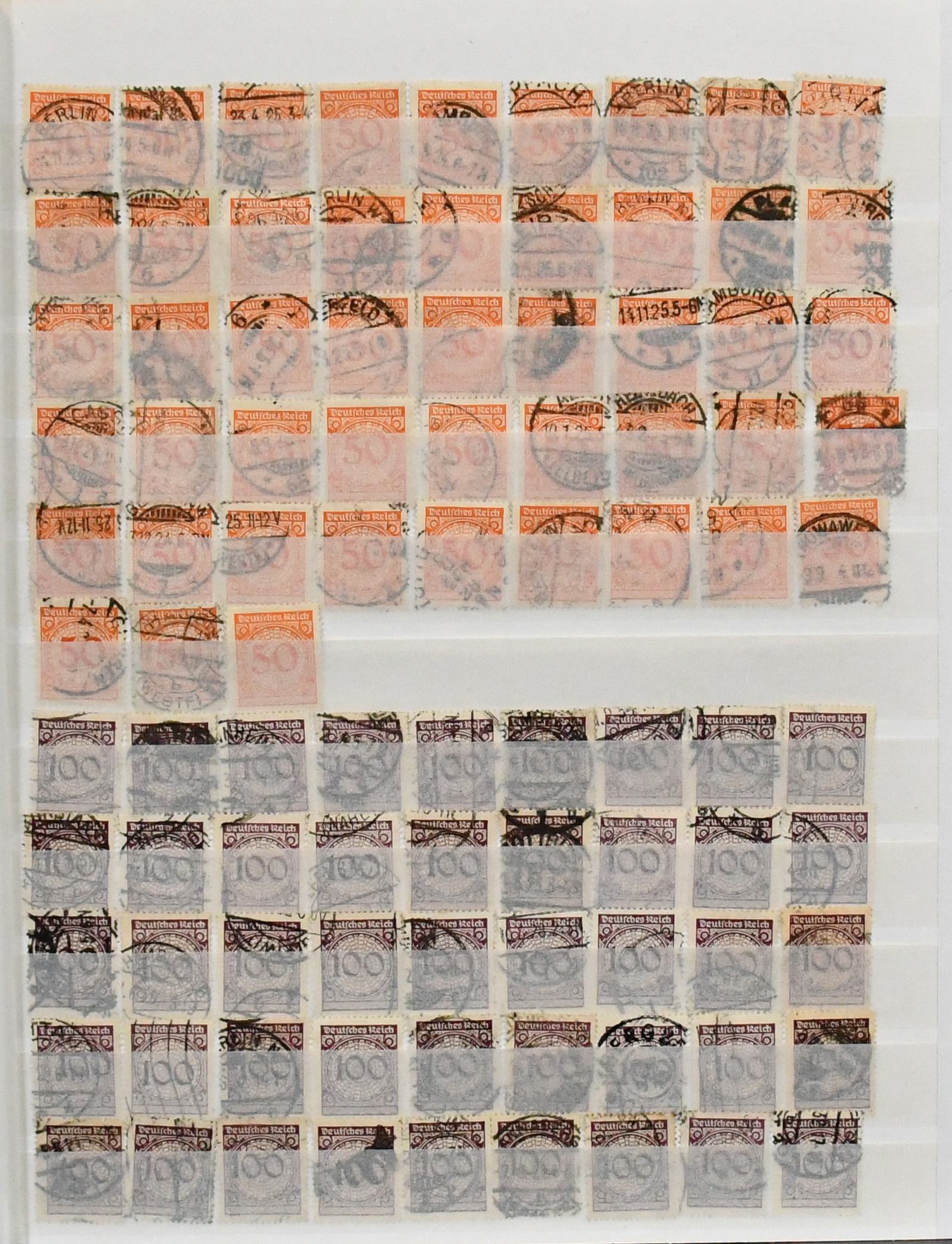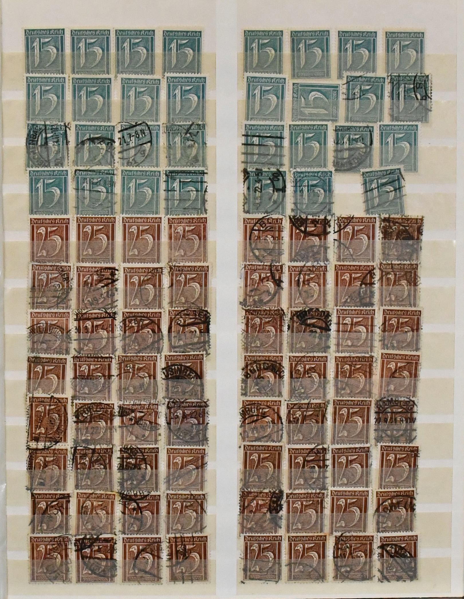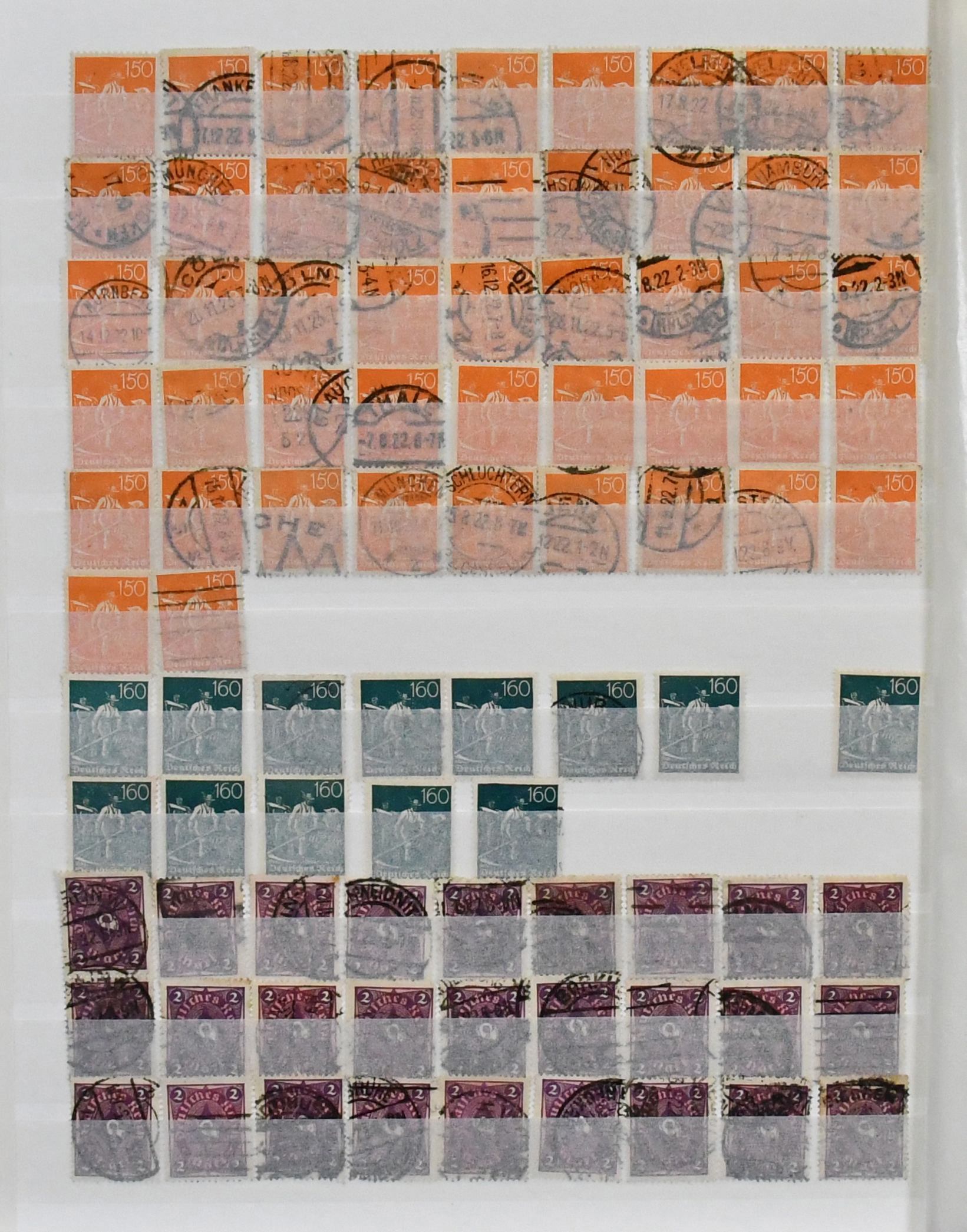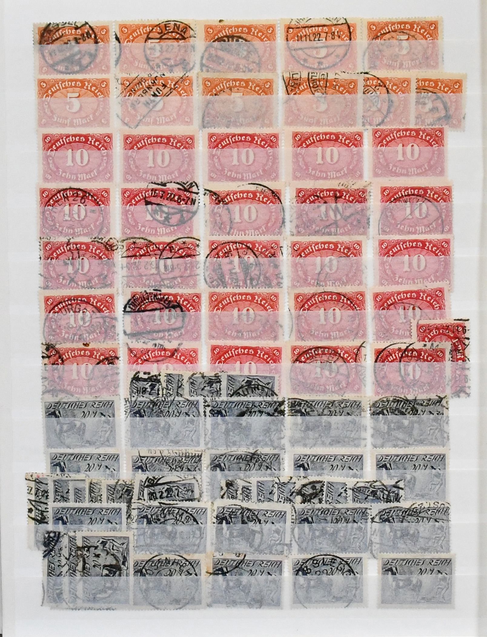 Deutsches Reich, 1922/32, Partie von etwa 1700 gest. Infla-Werten (Mi. billigst 3500,-), inkl. viel Hochinflation, mit Aufdruckwerten und Korbdeckelmuster