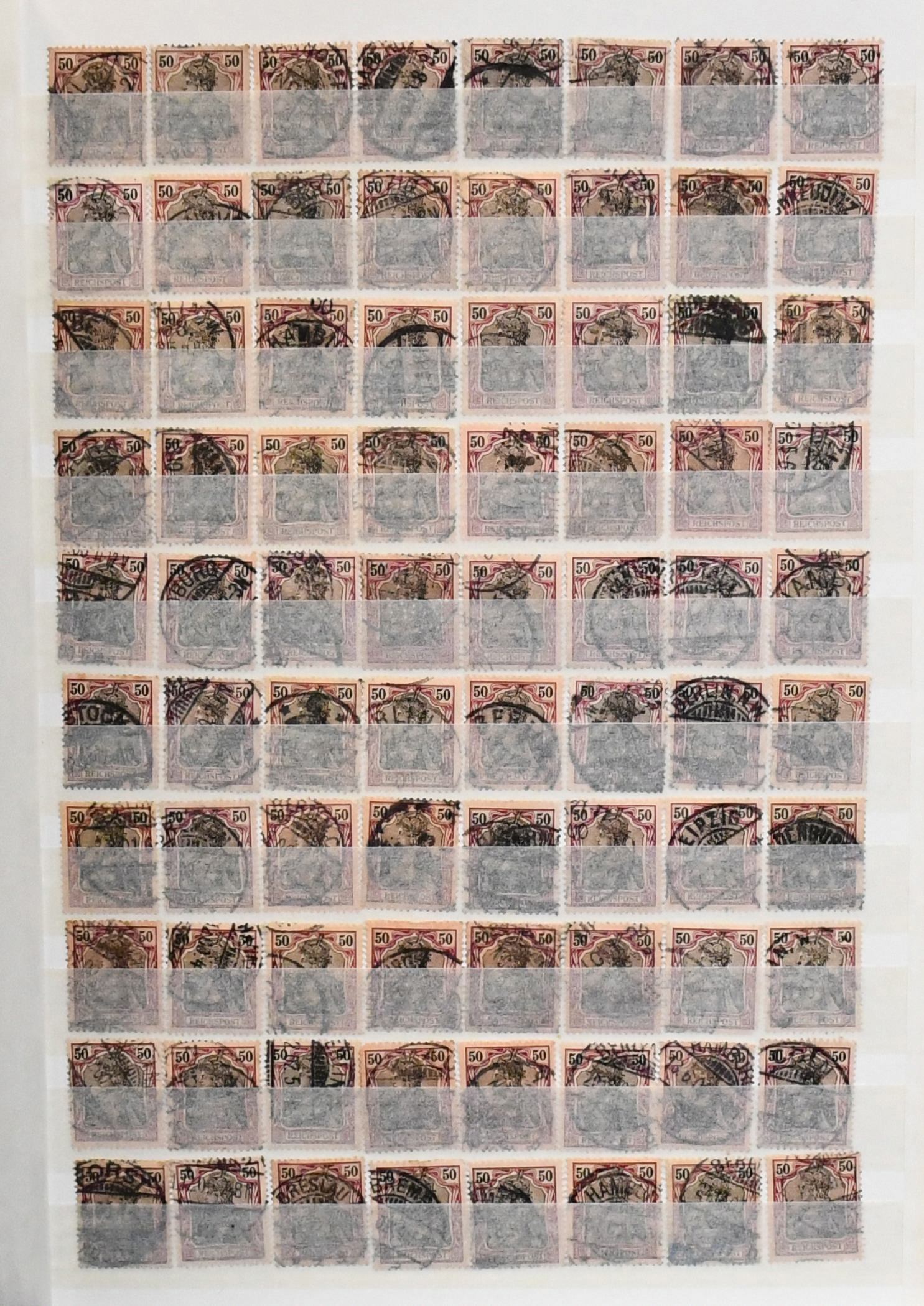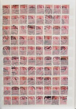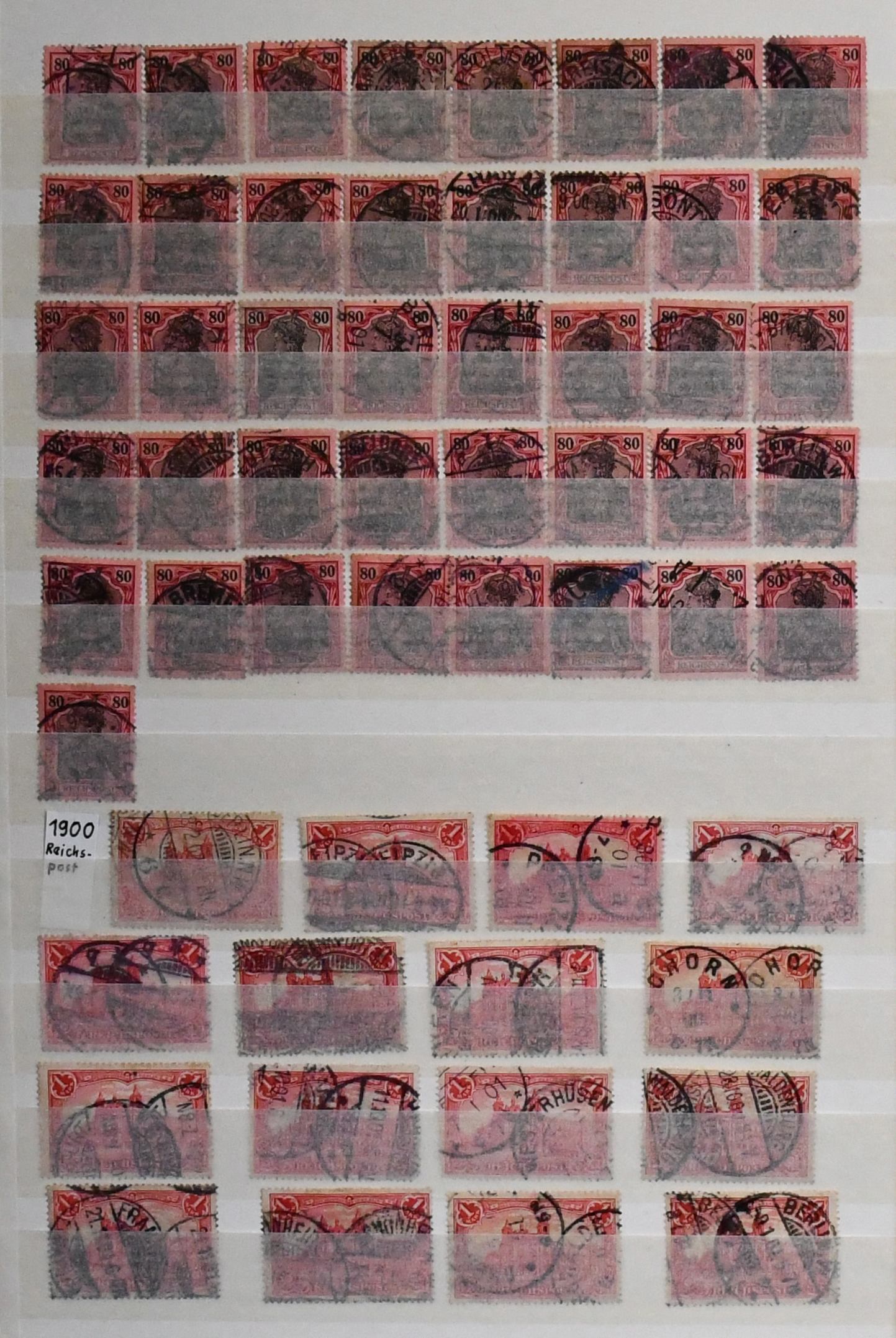 Germania, Reichspost, Partie von 1600 gest. Werten ex Nr. 52/65, jede Wertstufe mehrfach, im E-Buch. Mi., alles billigst gerechnet, bereits 2500,-, Fundgrube!