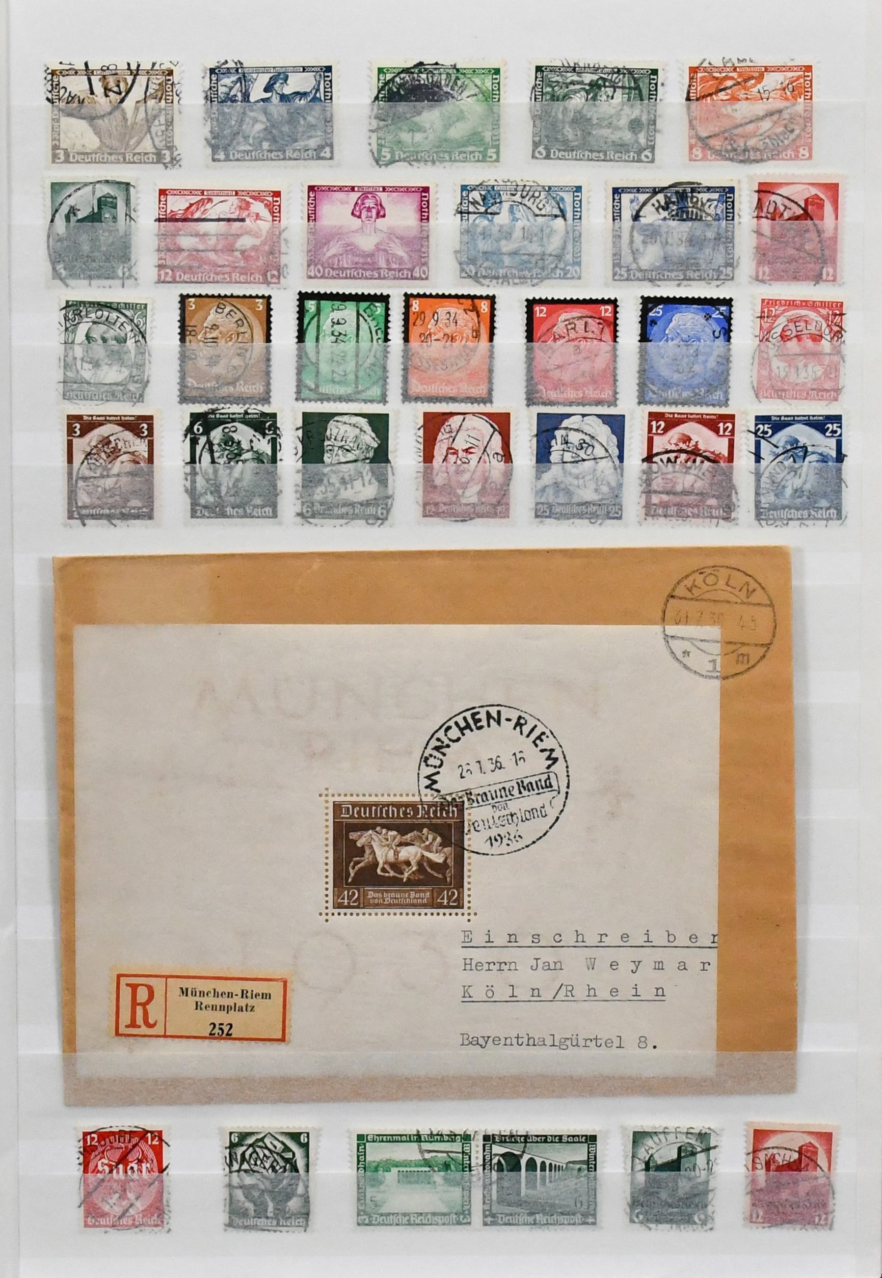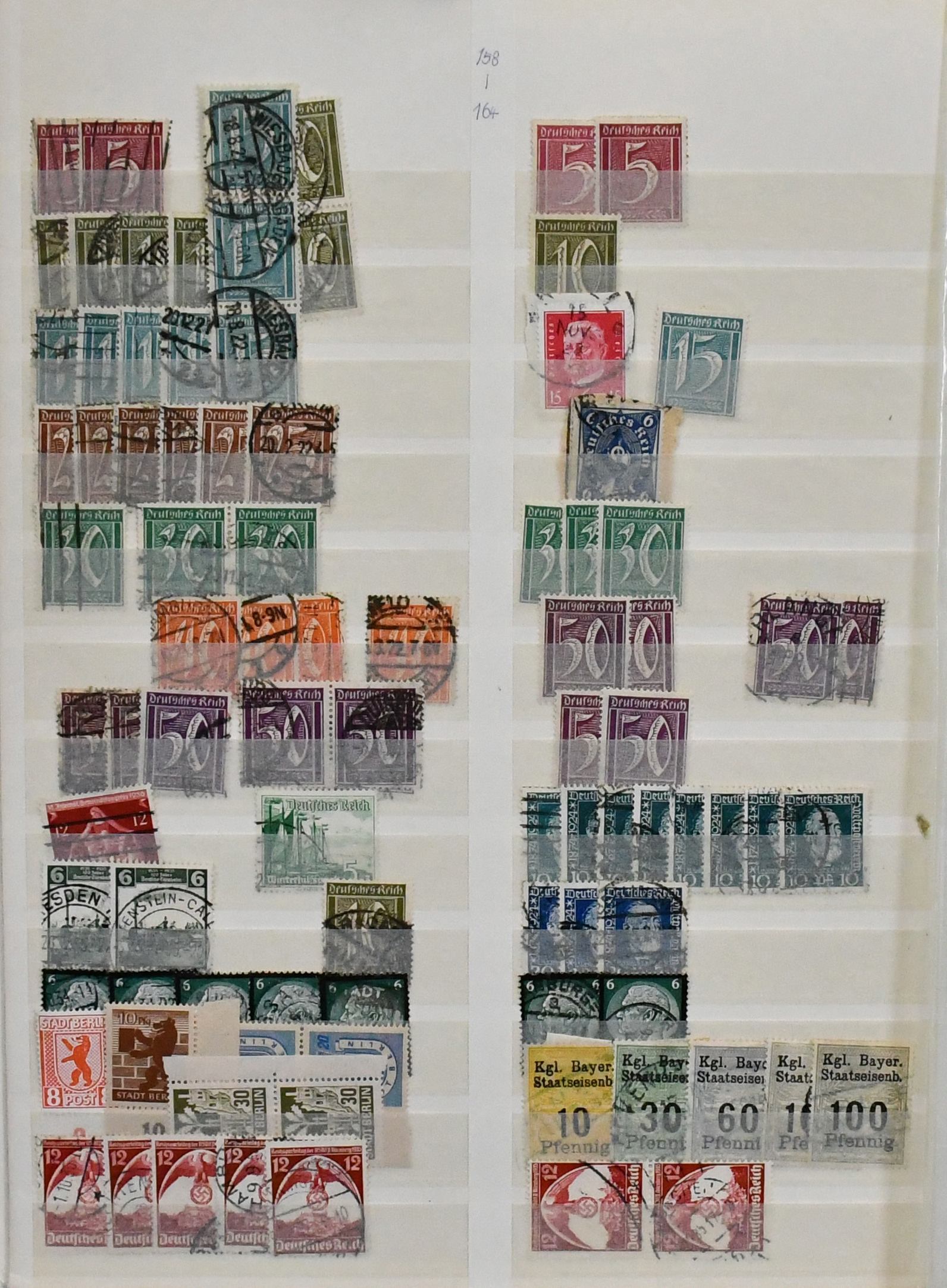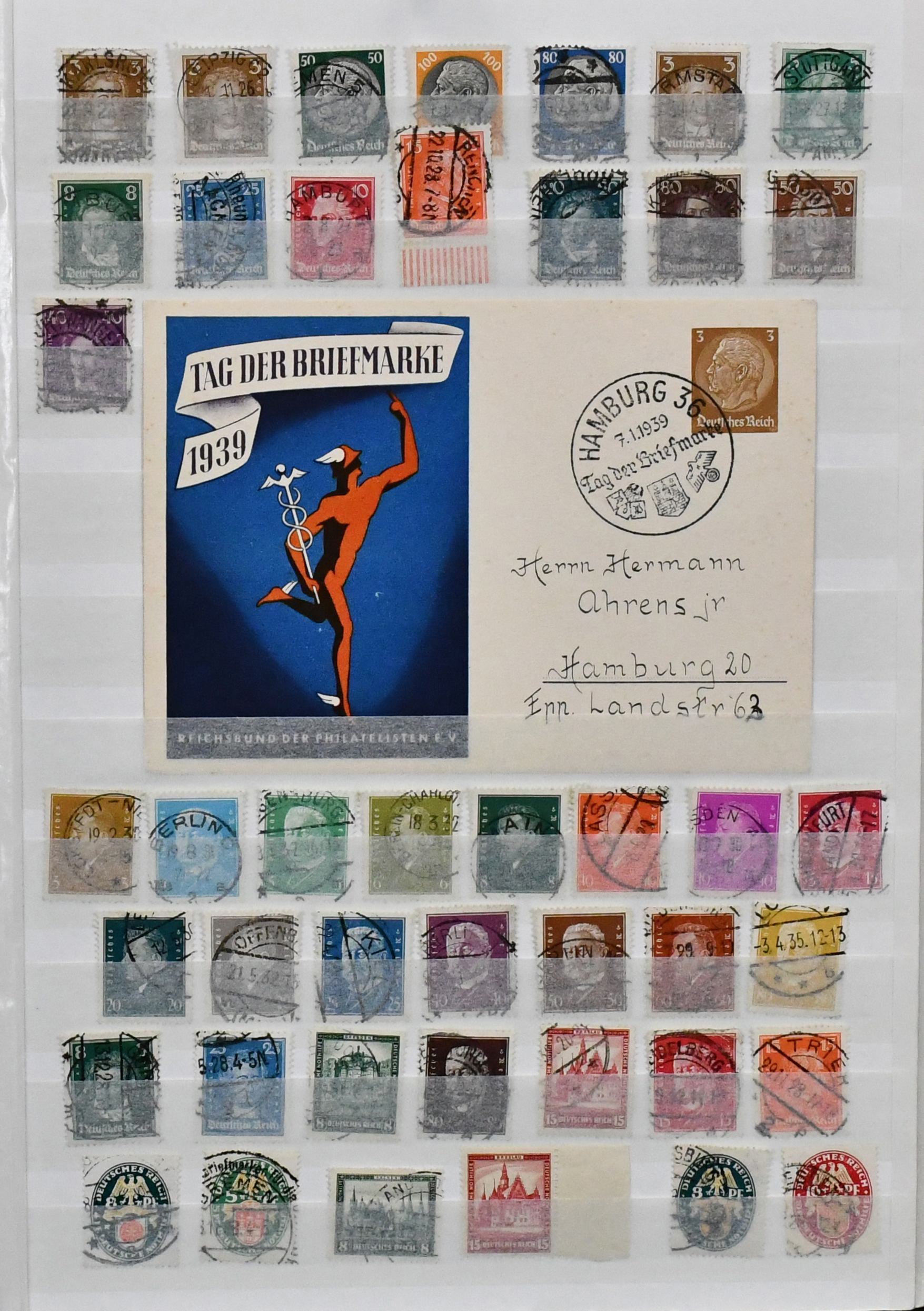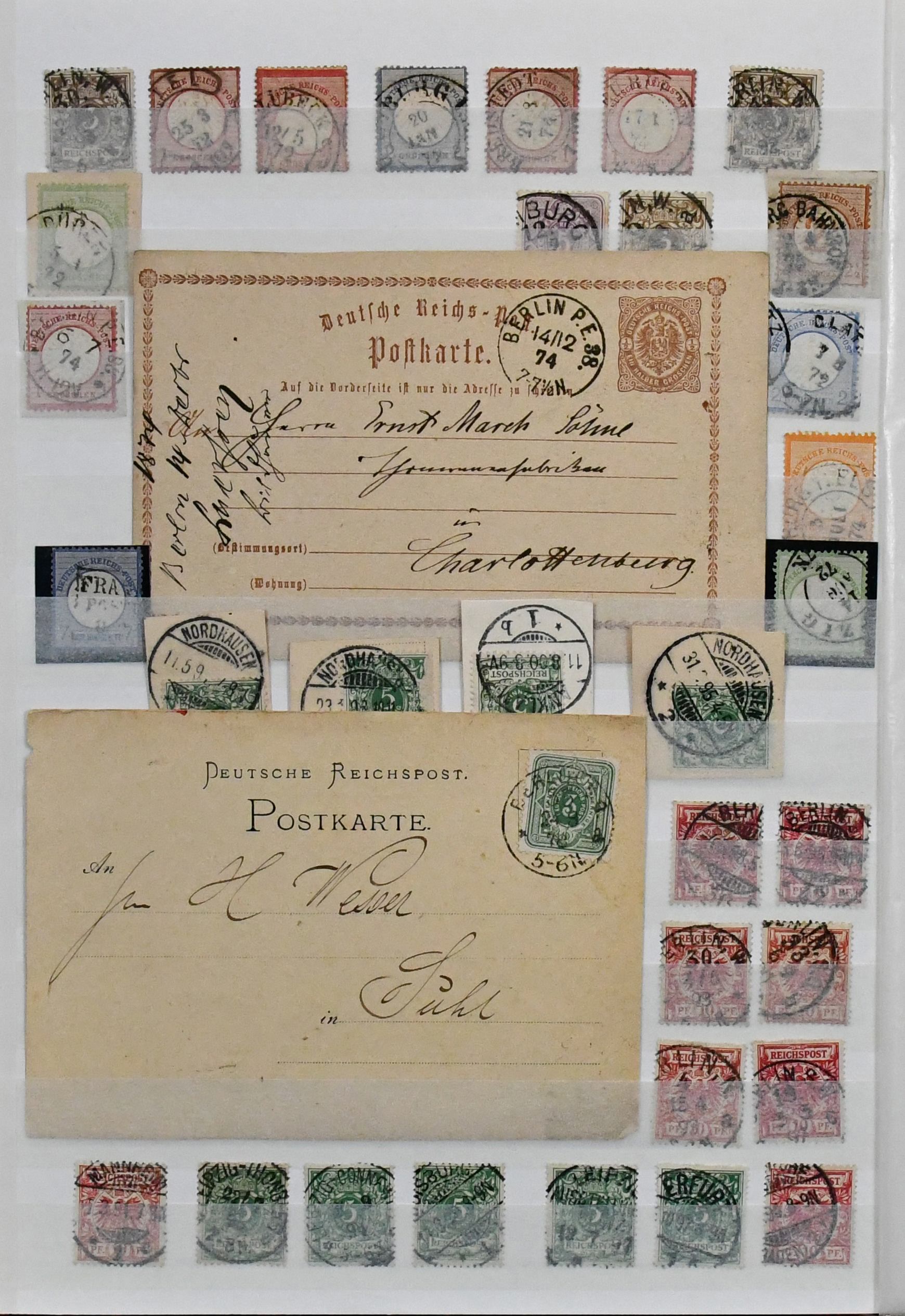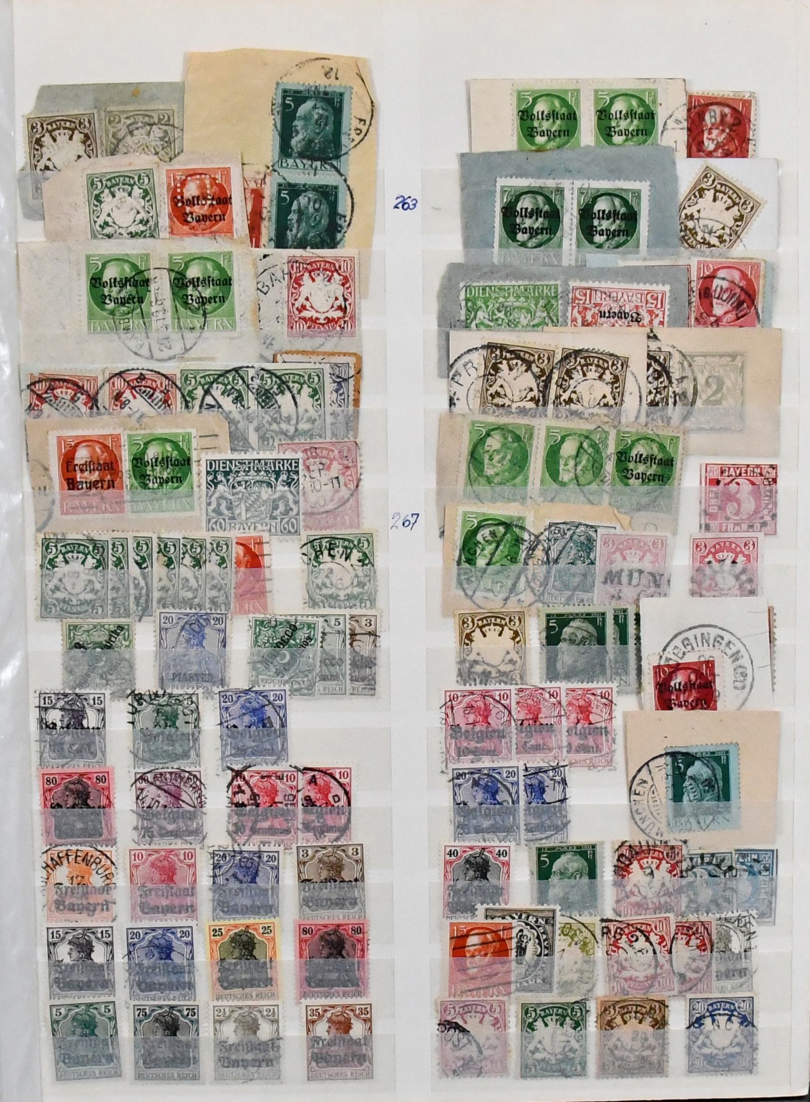 Deutschland, 1851-1943, meist gest. Partie auf alten Steckseiten, dabei etwas Württemberg mit u.a. Nr. 1, 2(2), 12, 22 usw. Ferner Deutsches Reich mit einigen Brustschilden, z.B. Nr. 10, tiefst sign. Krug BPP, Nr. 29 auf Bfst., III. Reich mit besseren Ausgaben wie z.B. Nr. 505 u. 506 gest., Bl. 4 auf Briefvorderseite etc.