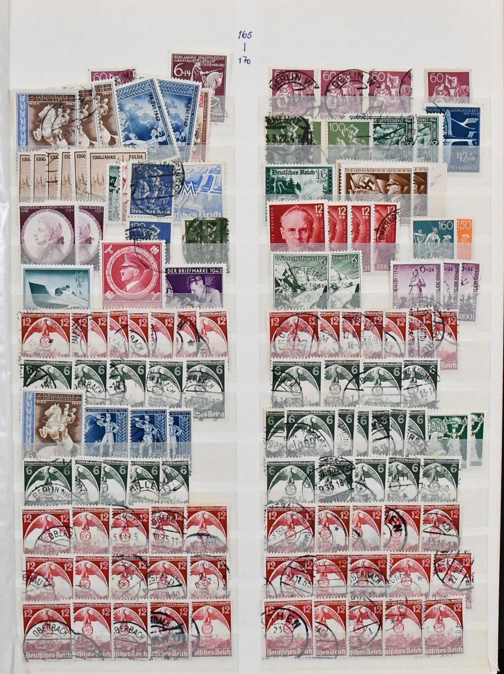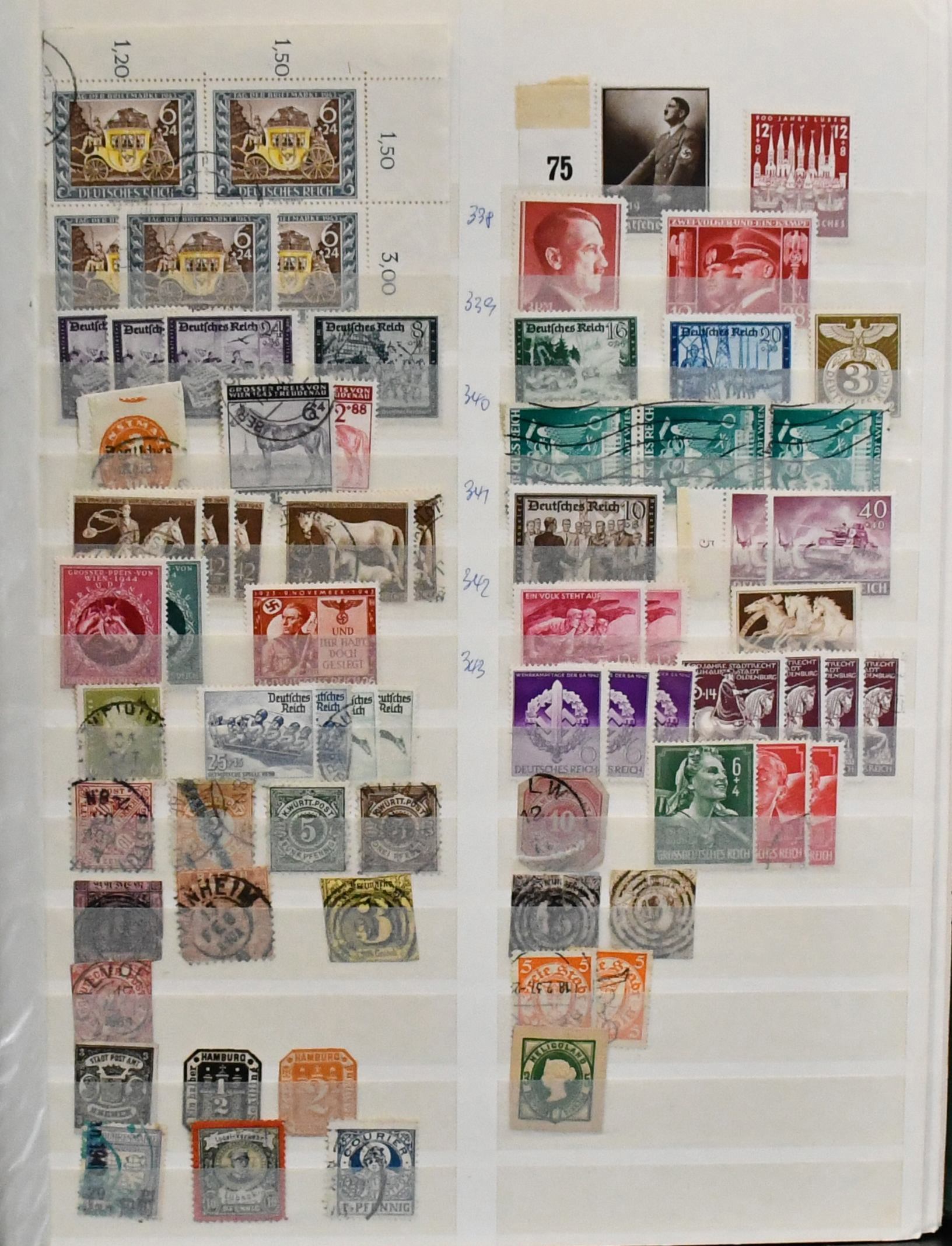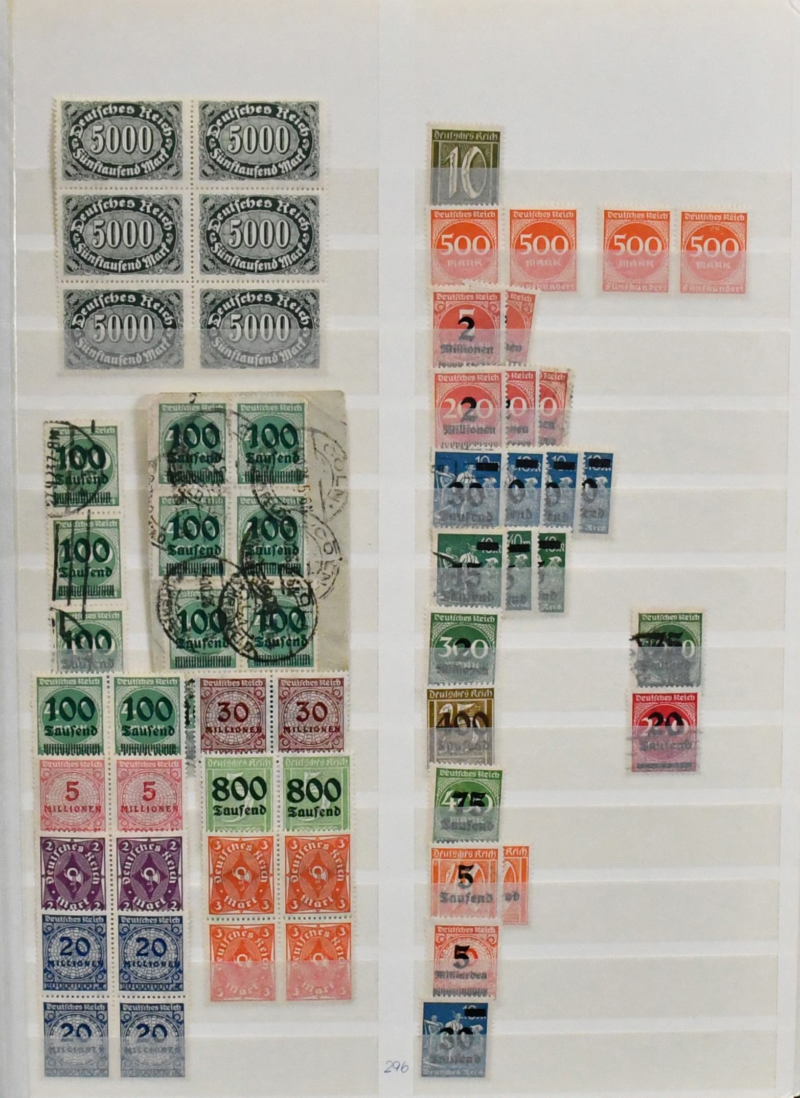 Deutschland, Sammlungsbestand in vier Alben, postfr./ungebr. bzw. gest., dabei DDR aus 1949-59 mit den meisten Anfangswerten, Lagerbuch mit Deutsches Reich, u.a. ca. 2000 gest. Infla-Werte, Zonen, sowie postfr. Lagerbuchbestände DDR der letzten Jahre