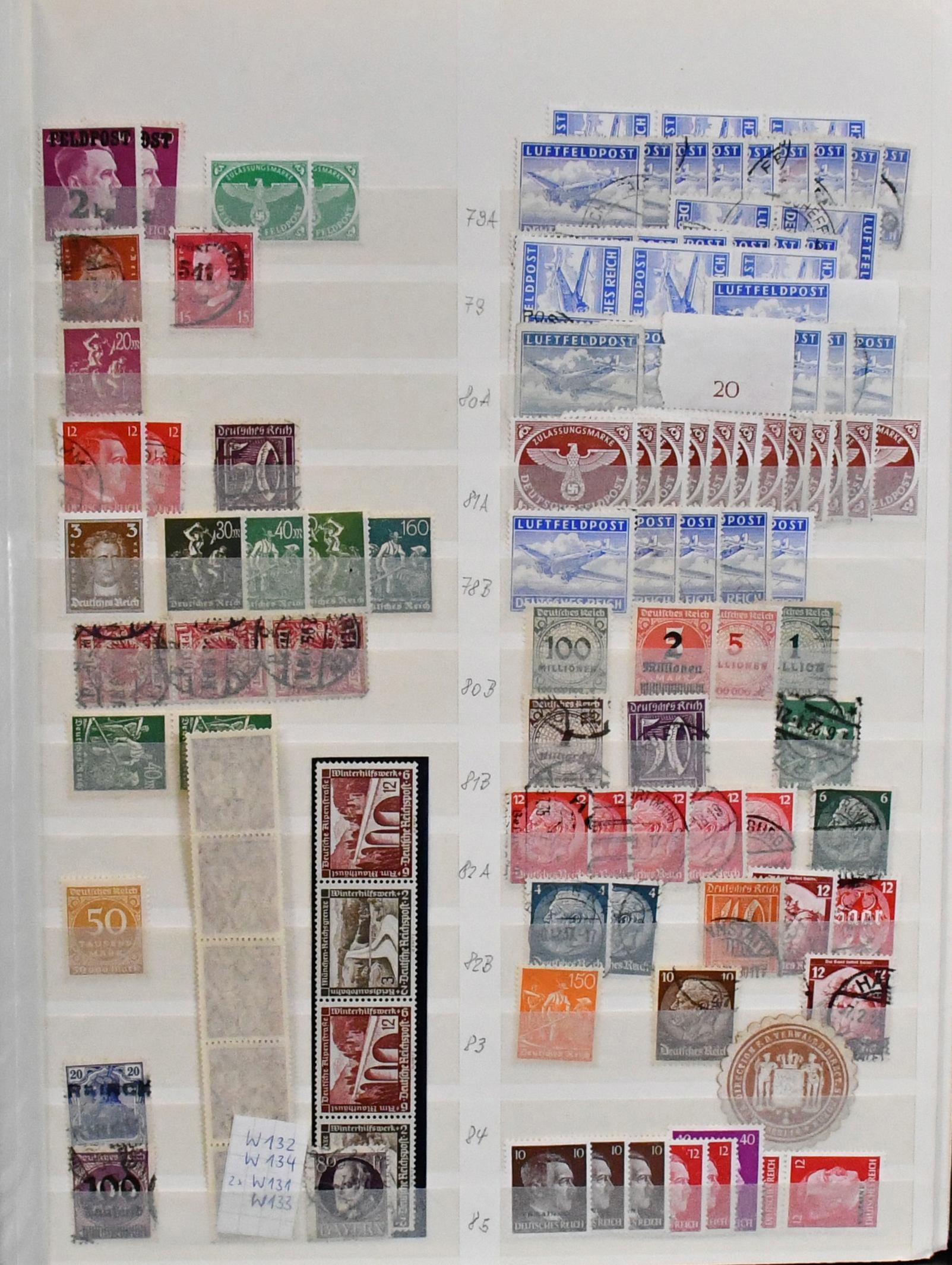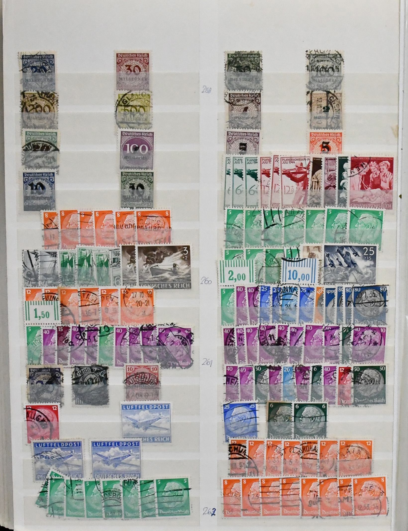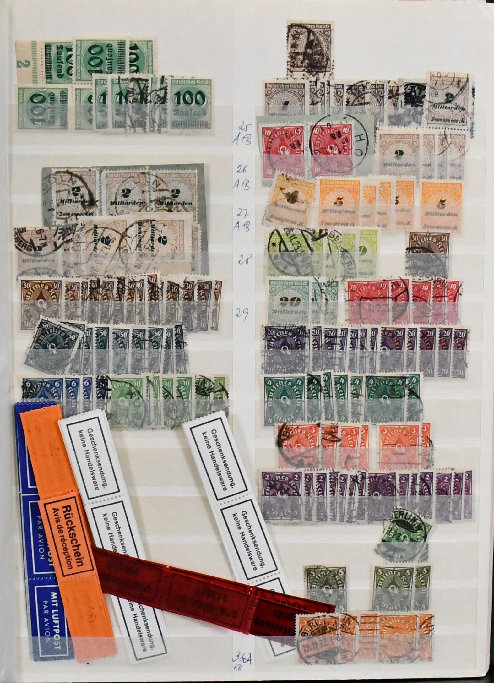 Deutschland, Sammlungsbestand in vier Alben, postfr./ungebr. bzw. gest., dabei DDR aus 1949-59 mit den meisten Anfangswerten, Lagerbuch mit Deutsches Reich, u.a. ca. 2000 gest. Infla-Werte, Zonen, sowie postfr. Lagerbuchbestände DDR der letzten Jahre
