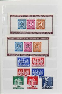 Deutschland nach 1945, Slg. mit Zonen inkl. Gemeinschaftsausgabe Bl. 12A/B, VZd1, Bizone Bl. 1, Rheinl.-Pfalz Rotkreuz-Satz, Bund mit dreimal Nr. 189 ungebr. (Mi. 225,-), DDR ab Nr. 242/50, mit Nr. 261/70, 286/88, SBZ Nr. 195 usw.